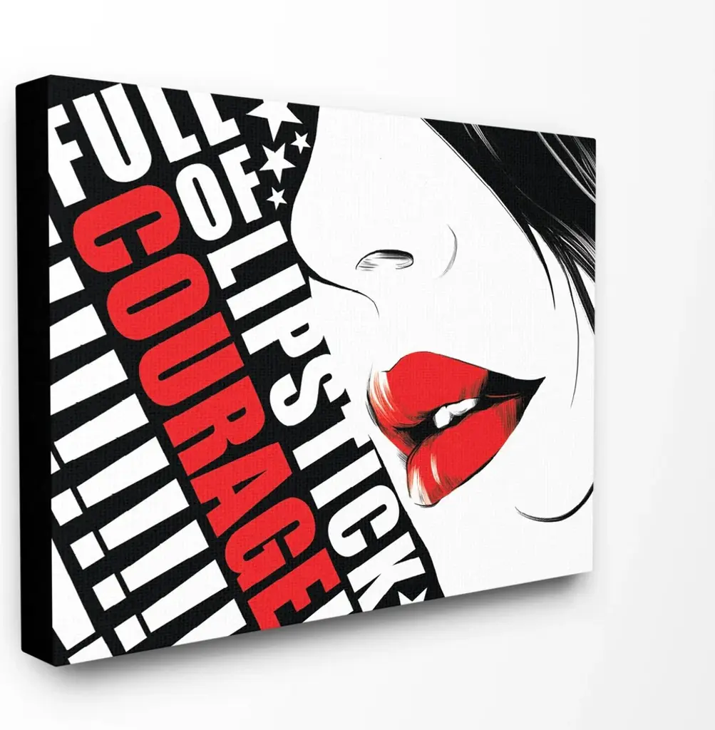 Red & Black Full Of Lipstick Courage Glam Fashion Poster Canvas Art, 30"x40"