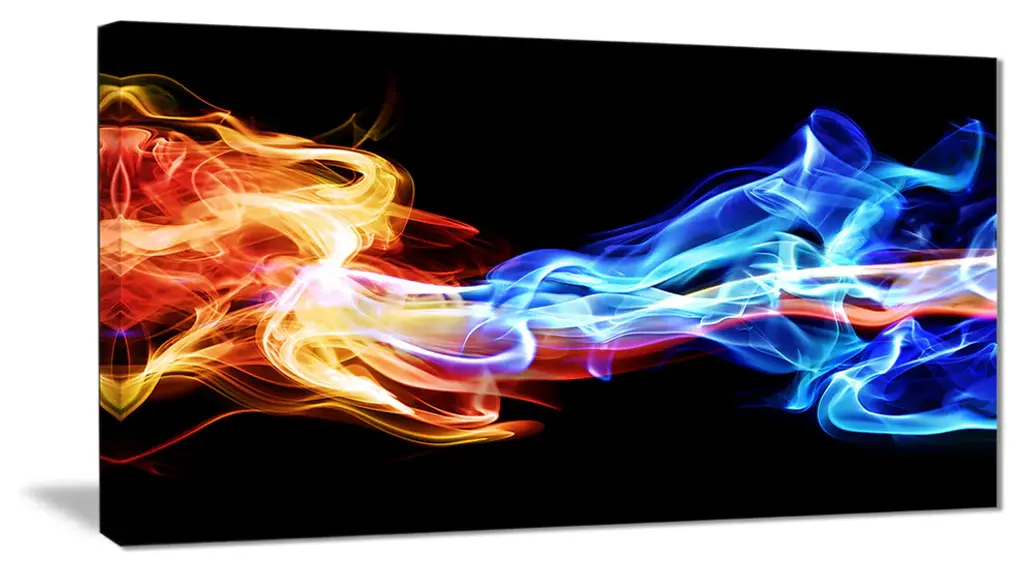 The Red and Blue Smoke Abstract canvas art print is sure to make an impression on anyone who sees it. This artwork is gallery wrapped around a 1-inch solid wood frame and arrives carefully packaged and entirely ready to hang on the wall. Design Art only uses the highest resolution and pigments to ensure a crisp colorful print that is never faded or pixelated. This artwork is sure to be a conversation starter in any home or office.