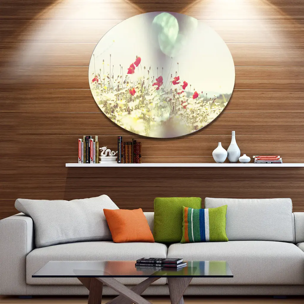 Red And White Poppy Flowers Field, Flower Large Disc Metal Artwork, 23"