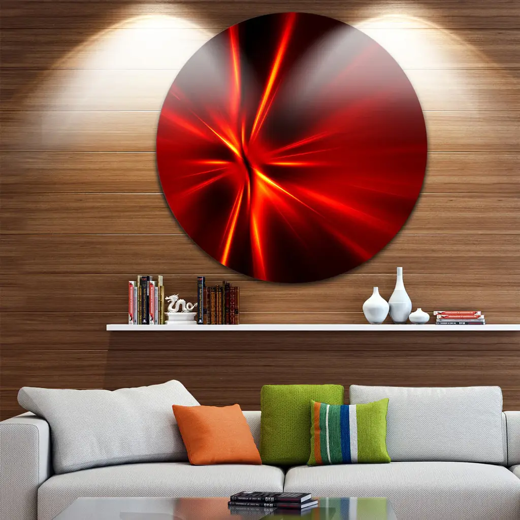 Red And Yellow Rays, Abstract Digital Art Round Wall Art, 23"