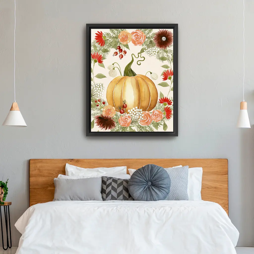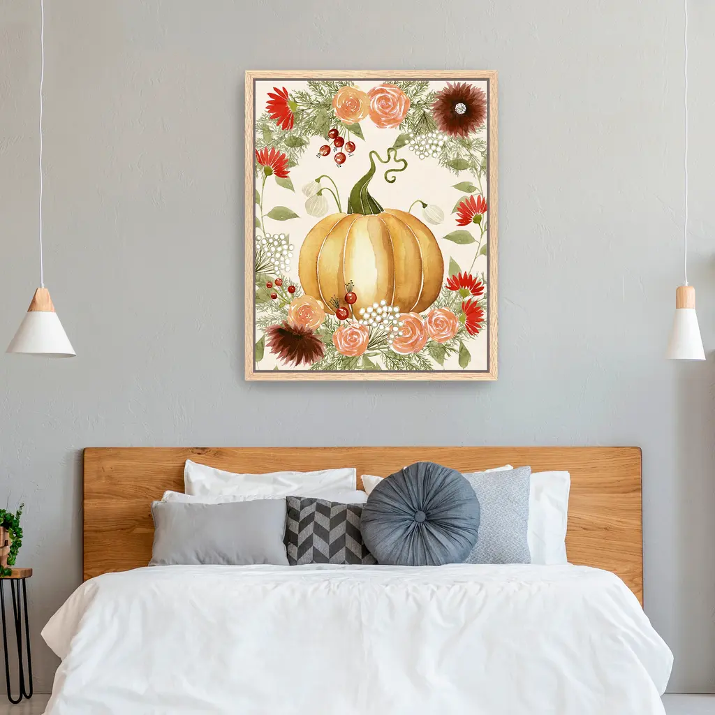 Transform any space into a fall retreat with a pumpkin canvas print that blends harvest motifs and seasonal warmth. A charming visual reminder of cozy gatherings and crisp autumn days. Our Gallery Wrap Canvas Prints are proudly assembled with high quality materials in California, USA. Each piece is printed on a thick, archival grade canvas using Giclee technology. It is then hand-stretched by our experienced artisans over solid wood bars, which will not warp over time. The final product is a piece personally crafted for you to confidently display on your wall. Care and Assembly: Ensure that the location of your piece has little to no exposure to heat, sunlight, and moisture. Wipe clean, only if needed. Each piece includes a sawtooth hanger to hang on your wall vertically.