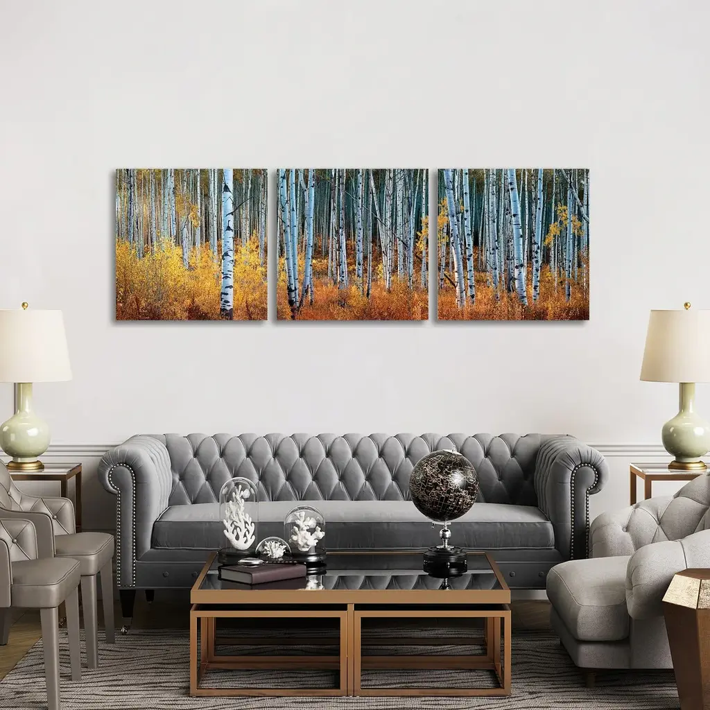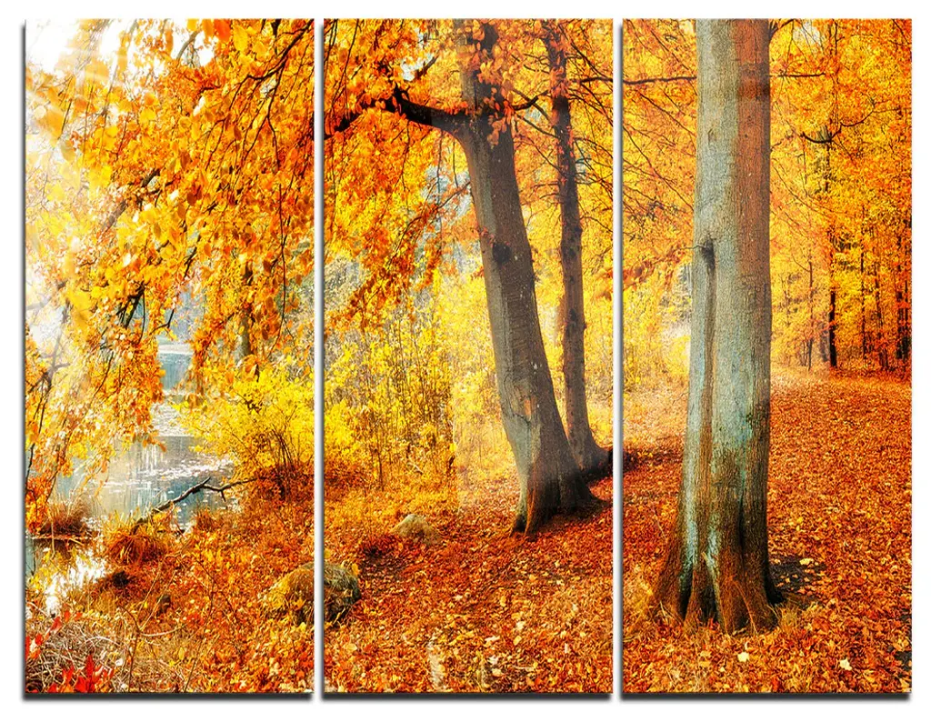72"œ x 36"œ total size. Ready To Hang! (3 pieces - 24"œ x 36"œ each). 3 Panel Split (Triptych) Red Autumn in the park Metal Print. Modern metal wall art for home or office wall decor & interior design. Printed on Luxurious, HD aluminum glossy metal panels. Multi panel art.. HD aluminum panels. Metal print wall art. Includes Shadow Wall Mount on the back.• Aluminum Metal Wall Art• Made in USA• Ready to hang - No assembly required• Shadow mount hardware on the back• 0.045"œ thick HD Aluminum Panels• Scratch resistant, glossy finish• Superb color clarity, luxurious prints• Epson printing process• For indoor or moisture rich environment use• Easy to clean. Gently wipe with microfiber cloth.
