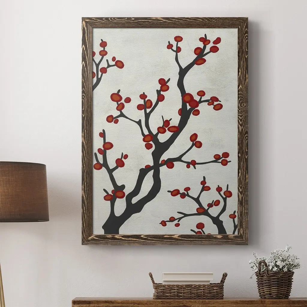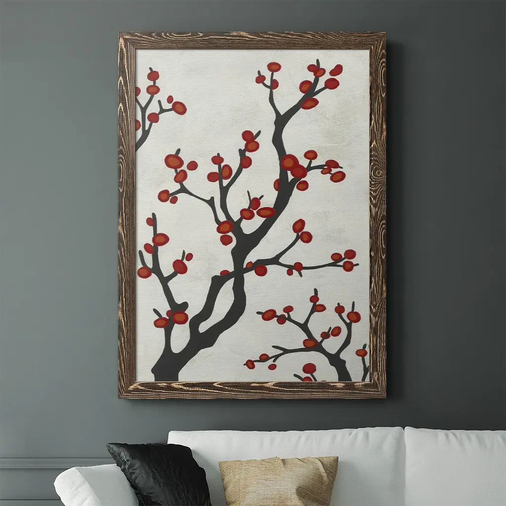 Red Berry Branch I-Premium Framed Canvas - Ready To Hang - 27.5x37.5 - Black