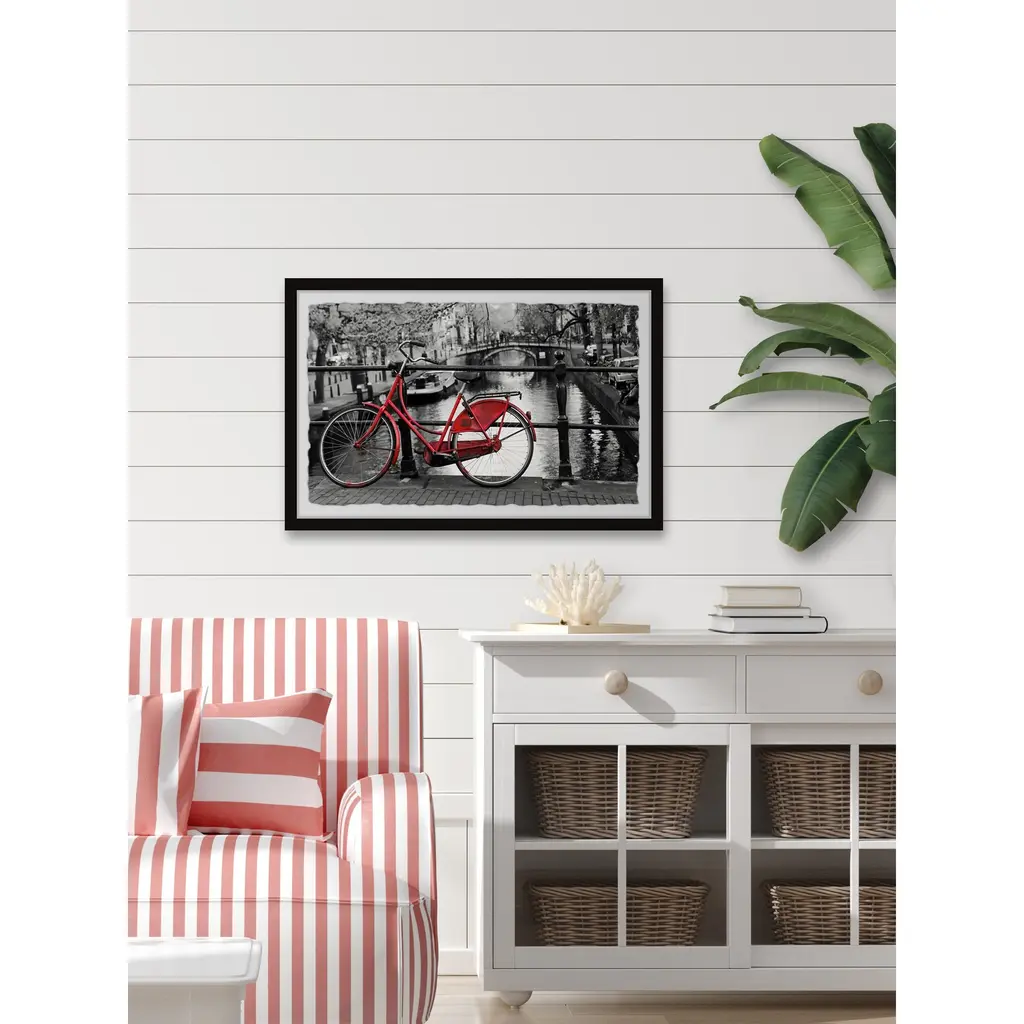 This photographic print invites a pop of color into your space, featuring a red bike on a bridge in Amsterdam rendered in a black and white setting. Proudly printed in the USA, this piece is printed on high quality archive paper and professionally hand-framed. With wall-mounting hooks included, this artful accent is ready to hang up as soon as it reaches your front door. • Top quality Giclee print on high resolution Archive Paper • Hand cut deckled edges • High quality durable non-warping frame • Finished under shatter resistant plexiglass • Arrives ready to hang • Includes a certificate of authenticity • Printed the USA