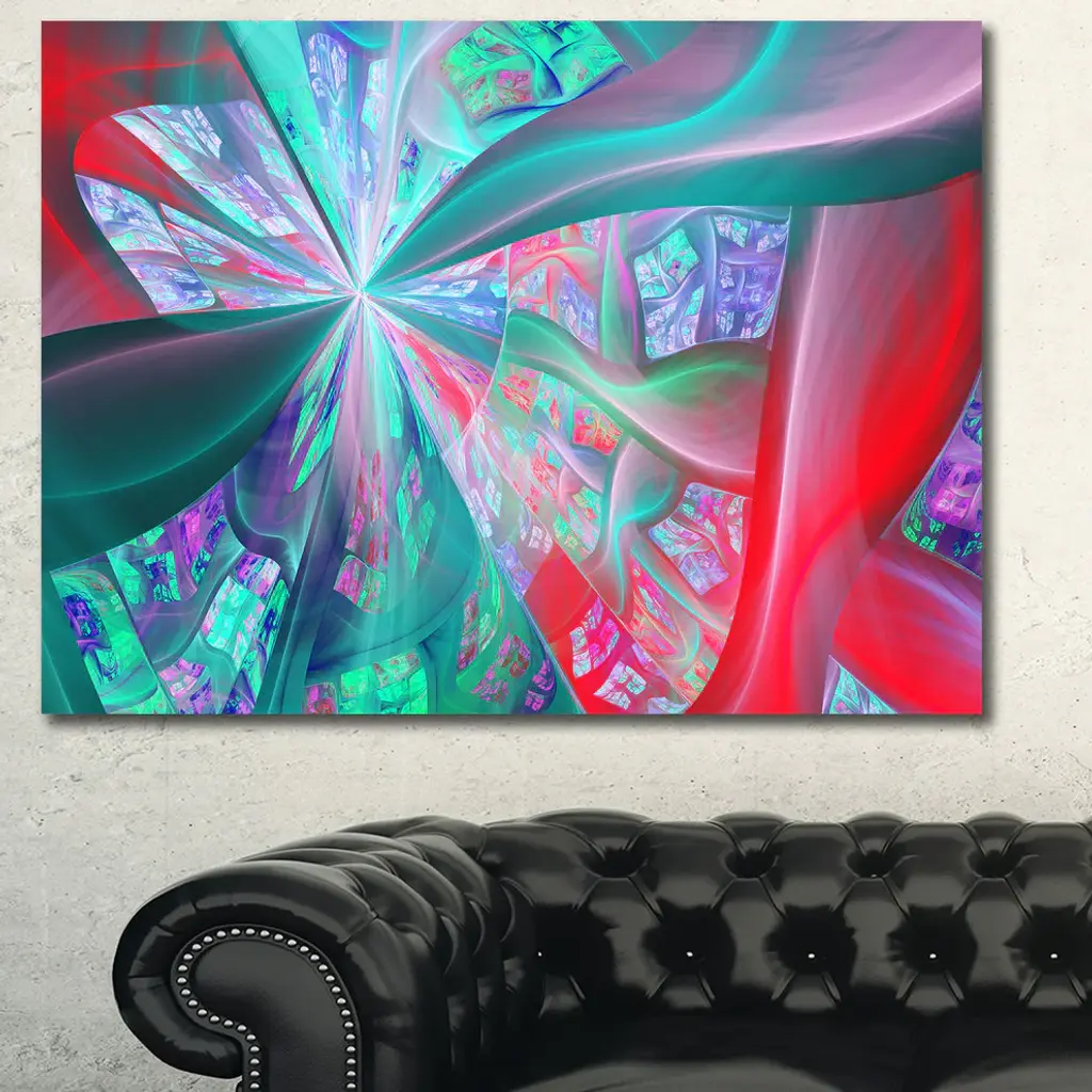 Red Blue Fractal Exotic Plant Stems, Oversized Abstract Canvas Art Print, 60x40