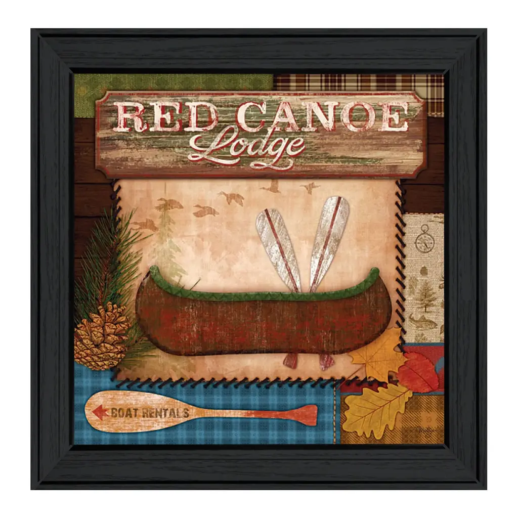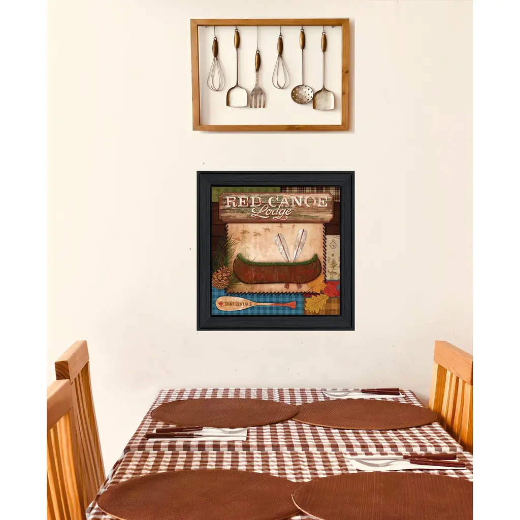 Unique and decorative, this red canoe lodge 2 black framed print wall art will leave a lasting impression. This transportation inspired wall art features a boat icon and will bring a refreshing look and perspective to your walls. This print is a visual artistic expression that allows you to decorate your space in style. Reproduced for you on paper, this hanging decorative accent will be a trendy and fashionable way to dress your walls. Hang on your wall to add some up to date fashion and decoration. Instantly liven up your space with this art that brings color and dimension to your walls. 15" H x 15" W x 1" D