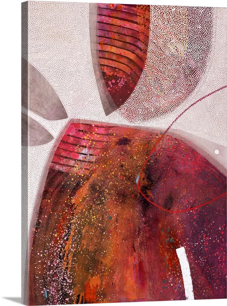 Red Circles Fractal Texture, Oversized Abstract Canvas Art Print, 60x40