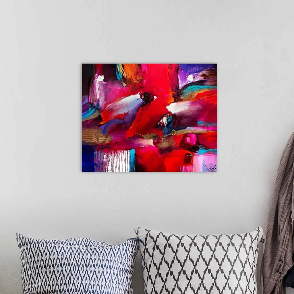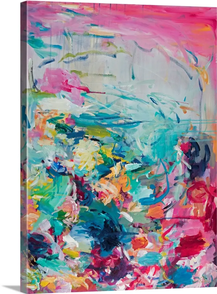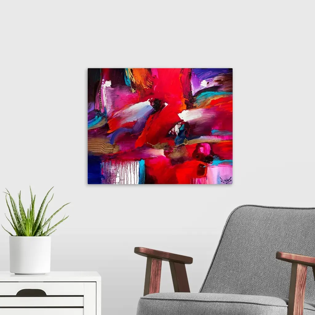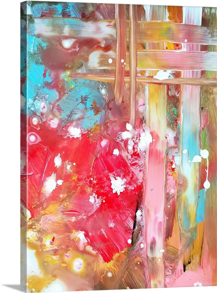 Contemporary abstract painting with various brush strokes of color oriented in several directions with areas of dripping paint by renowned Asheville, NC artist.