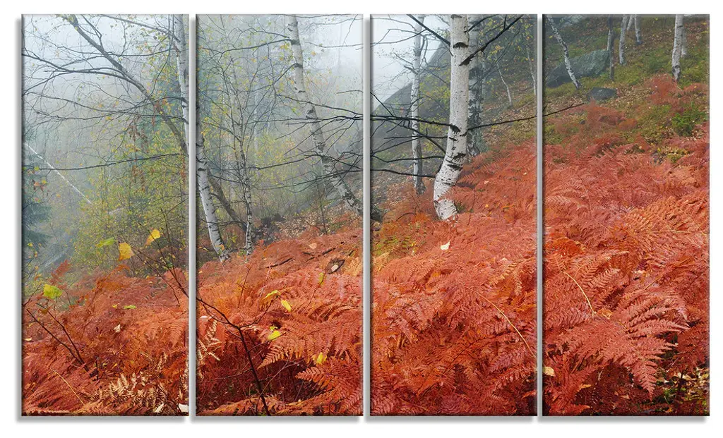 "Red Fern In Foggy Fall Fay" Canvas Print, 32"x16"