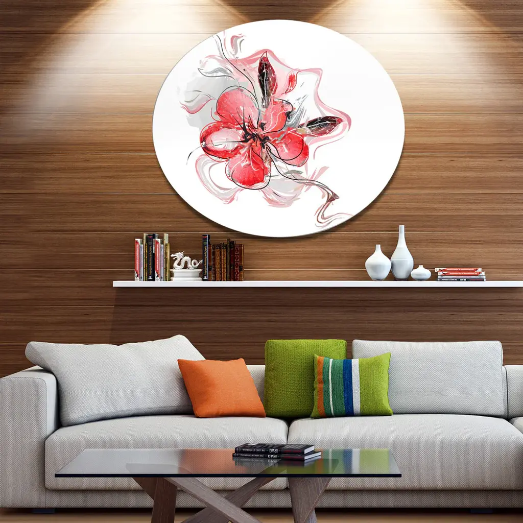 Bring Contemporary Abstraction to your home with this large Circle Metal wall art. This Red Floral Watercolor Sketch Metal Artwork makes it the focal point of any room or office. - White Gloss Coating ensures colors are extra vibrant with light reflection.- Aluminum grade Sheet Metal with 1 inch mounting frame on the back giving the illusion that the artwork is floating on the wall..- Mounting Brackets are included along with instructions.- High Quality Digital images are created directly into a glossy aluminum panel producing a stunning and captivating print into the glossy finish of the metal.- Water, Fire and Scratch resistant HD Aluminum panels.- Looks better than any photo paper and guaranteed to last at least 20 years- Easy to clean with a microfiber cloth. Colors are far superior to regular Canvas Art. - Easy to Hang