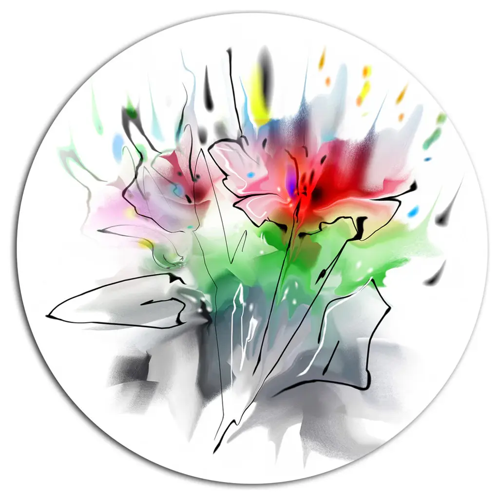 Bring Contemporary Abstraction to your home with this large Circle Metal wall art. This Red Floral Watercolor Sketch Metal Artwork makes it the focal point of any room or office. - White Gloss Coating ensures colors are extra vibrant with light reflection.- Aluminum grade Sheet Metal with 1 inch mounting frame on the back giving the illusion that the artwork is floating on the wall..- Mounting Brackets are included along with instructions.- High Quality Digital images are created directly into a glossy aluminum panel producing a stunning and captivating print into the glossy finish of the metal.- Water, Fire and Scratch resistant HD Aluminum panels.- Looks better than any photo paper and guaranteed to last at least 20 years- Easy to clean with a microfiber cloth. Colors are far superior to regular Canvas Art. - Easy to Hang