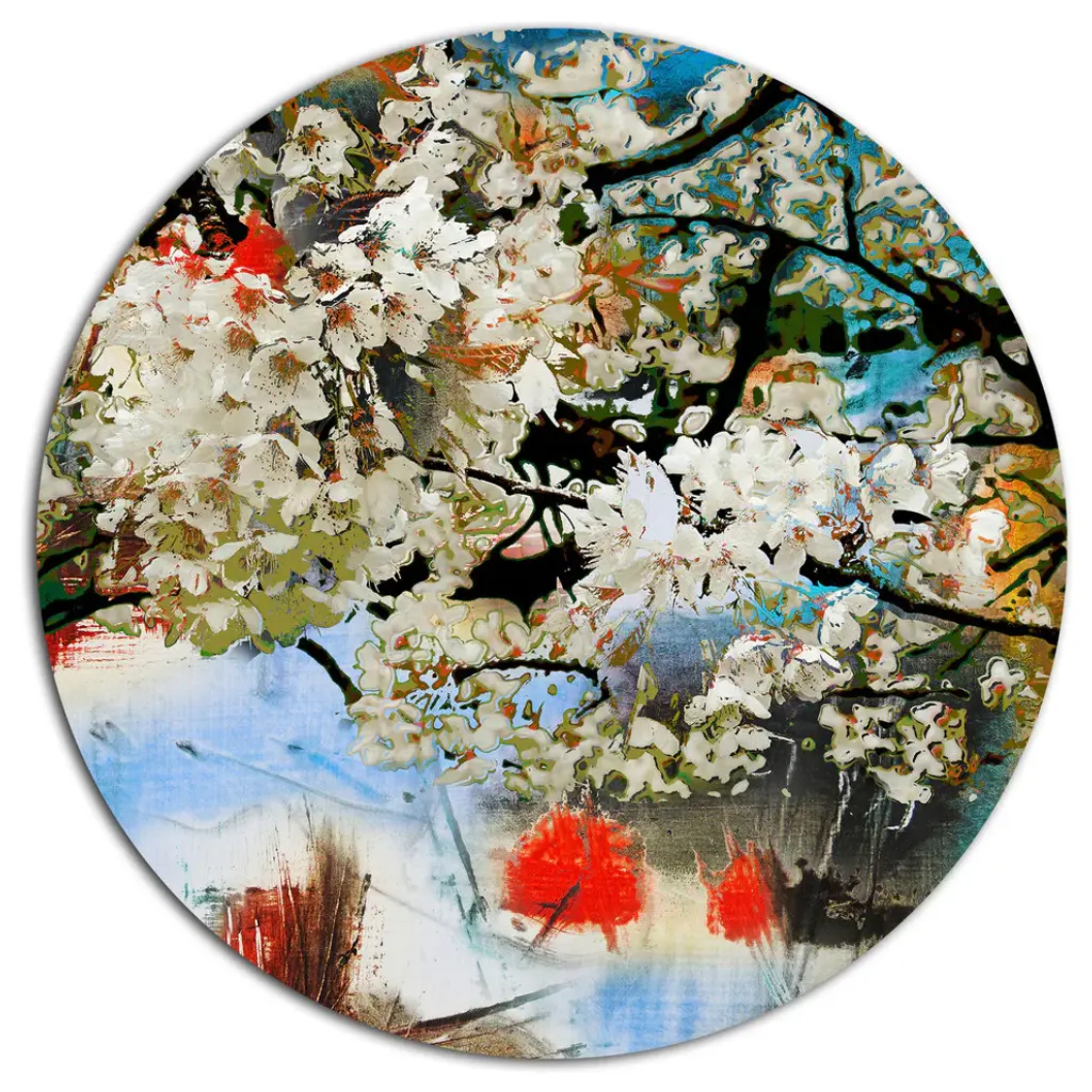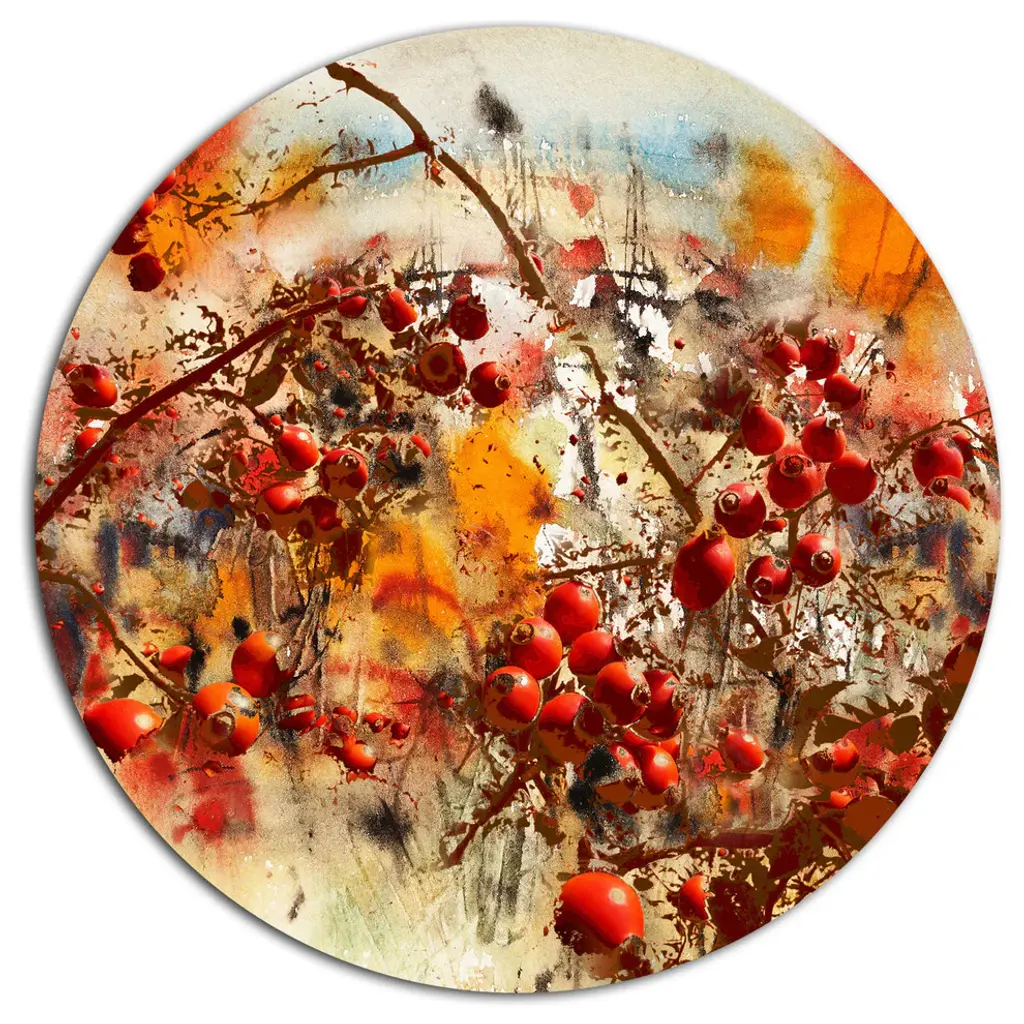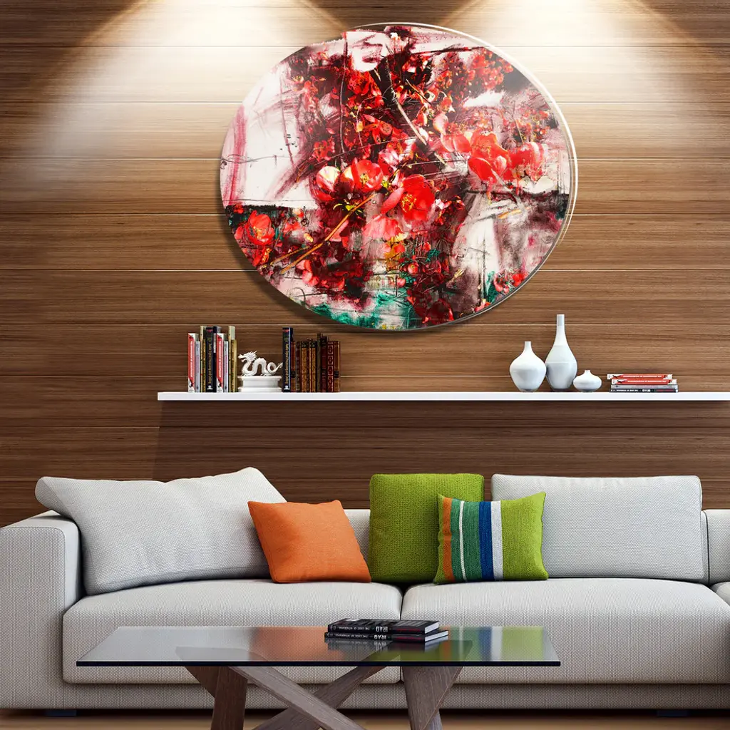 Bring Contemporary Abstraction to your home with this large Circle Metal wall art. This Red Flowers Abstract Background Metal Artwork makes it the focal point of any room or office. - White Gloss Coating ensures colors are extra vibrant with light reflection.- Aluminum grade Sheet Metal with 1 inch mounting frame on the back giving the illusion that the artwork is floating on the wall..- Mounting Brackets are included along with instructions.- High Quality Digital images are created directly into a glossy aluminum panel producing a stunning and captivating print into the glossy finish of the metal.- Water, Fire and Scratch resistant HD Aluminum panels.- Looks better than any photo paper and guaranteed to last at least 20 years- Easy to clean with a microfiber cloth. Colors are far superior to regular Canvas Art. - Easy to Hang