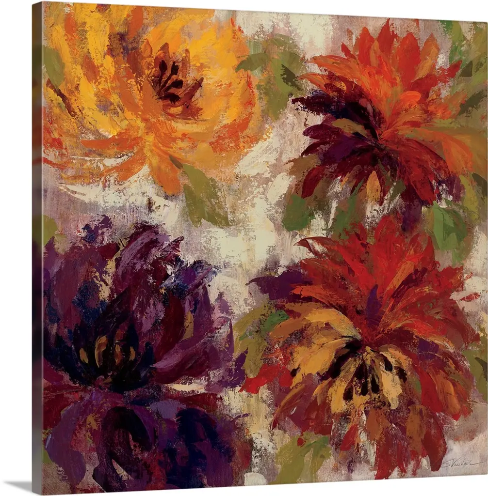 Red Flowers Abstract Background, Abstract Disc Metal Artwork, 11"