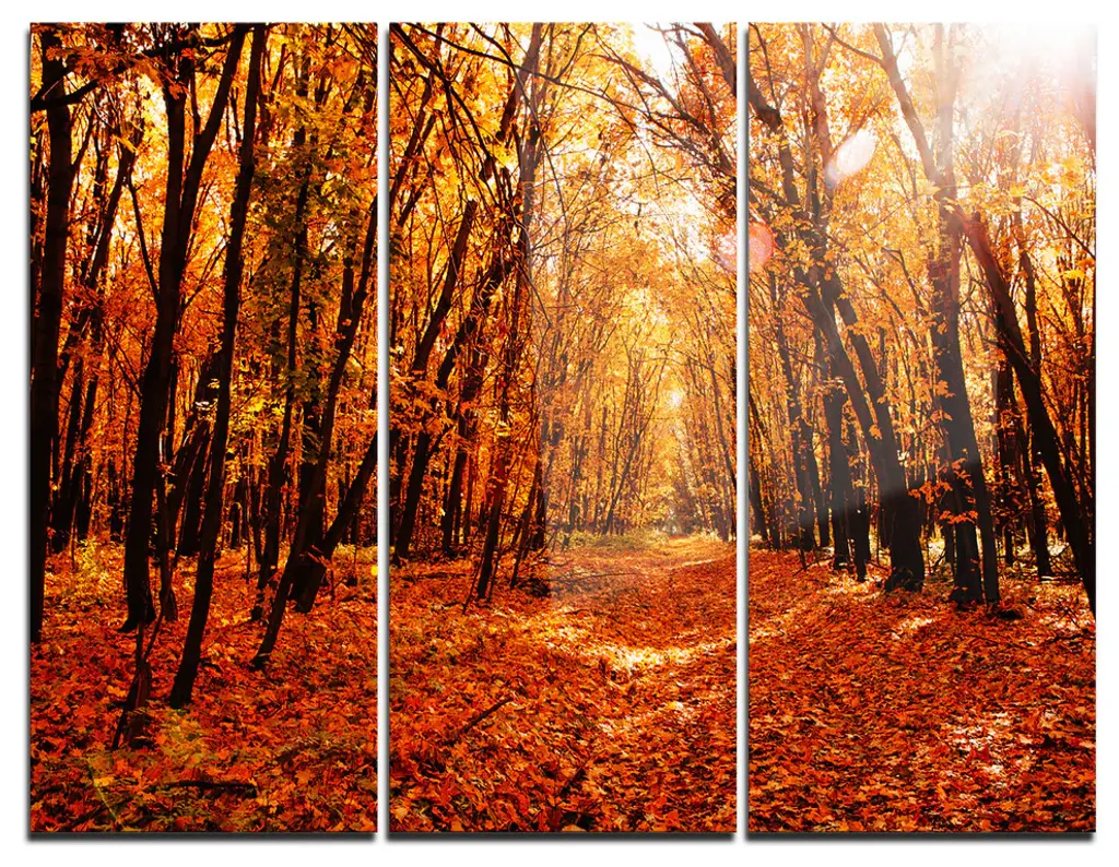 Red Forest In Autumn, Metal Print Wall Art, 3 Panel Split, Triptych, 60x30