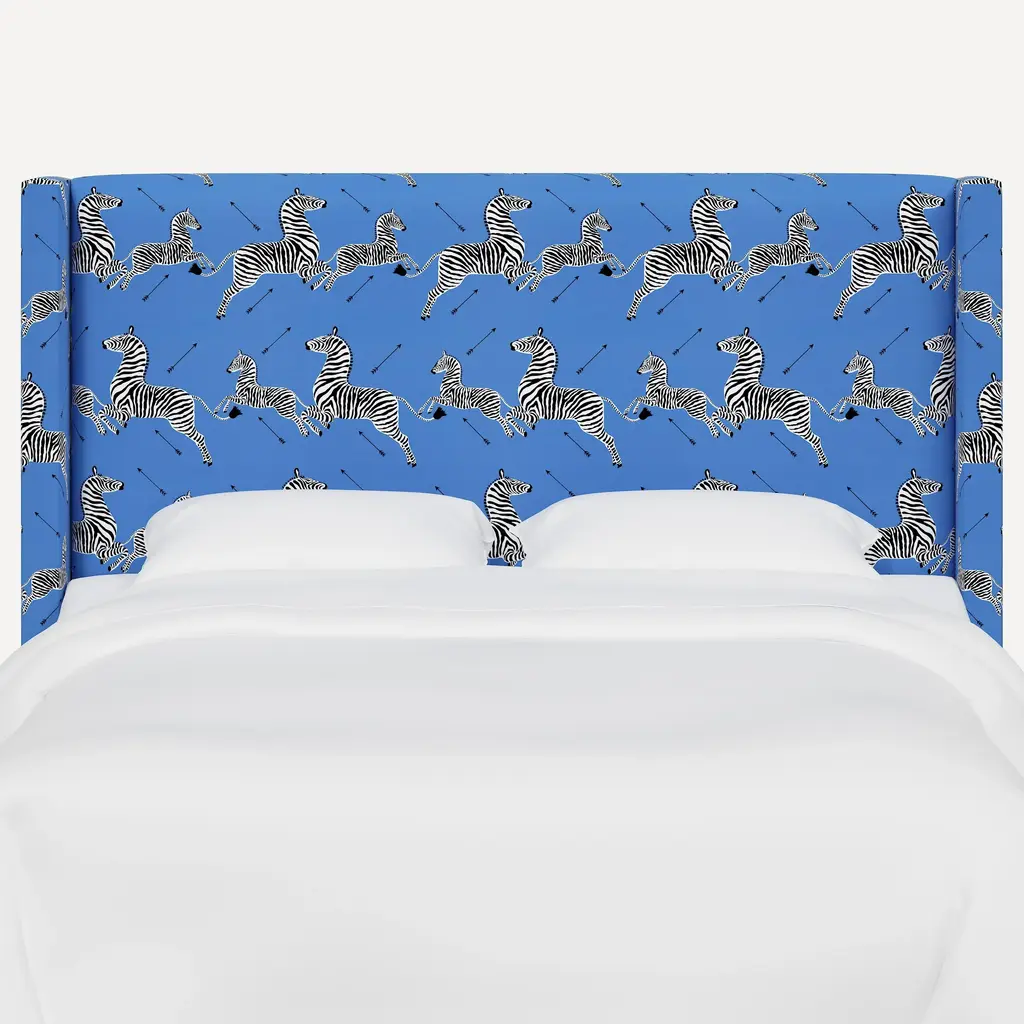 Red From Scalamandre Crafted By Cloth & Company Hudson Full Headboard, Royal Blue Animal Print