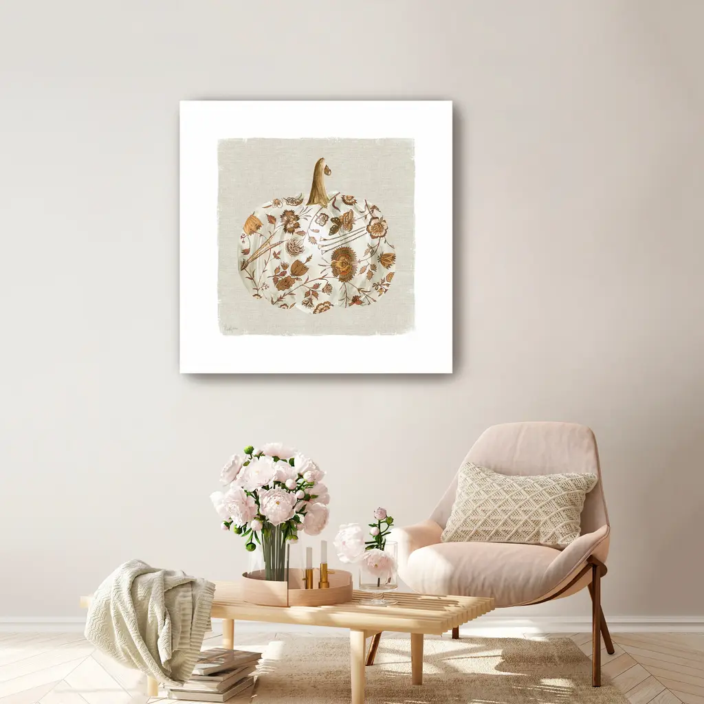 Transform any space into a fall retreat with a pumpkin canvas print that blends harvest motifs and seasonal warmth. A charming visual reminder of cozy gatherings and crisp autumn days. Our Gallery Wrap Canvas Prints are proudly assembled with high quality materials in California, USA. Each piece is printed on a thick, archival grade canvas using Giclee technology. It is then hand-stretched by our experienced artisans over solid wood bars, which will not warp over time. The final product is a piece personally crafted for you to confidently display on your wall. Care and Assembly: Ensure that the location of your piece has little to no exposure to heat, sunlight, and moisture. Wipe clean, only if needed. Each piece includes a sawtooth hanger to hang on your wall horizontally.