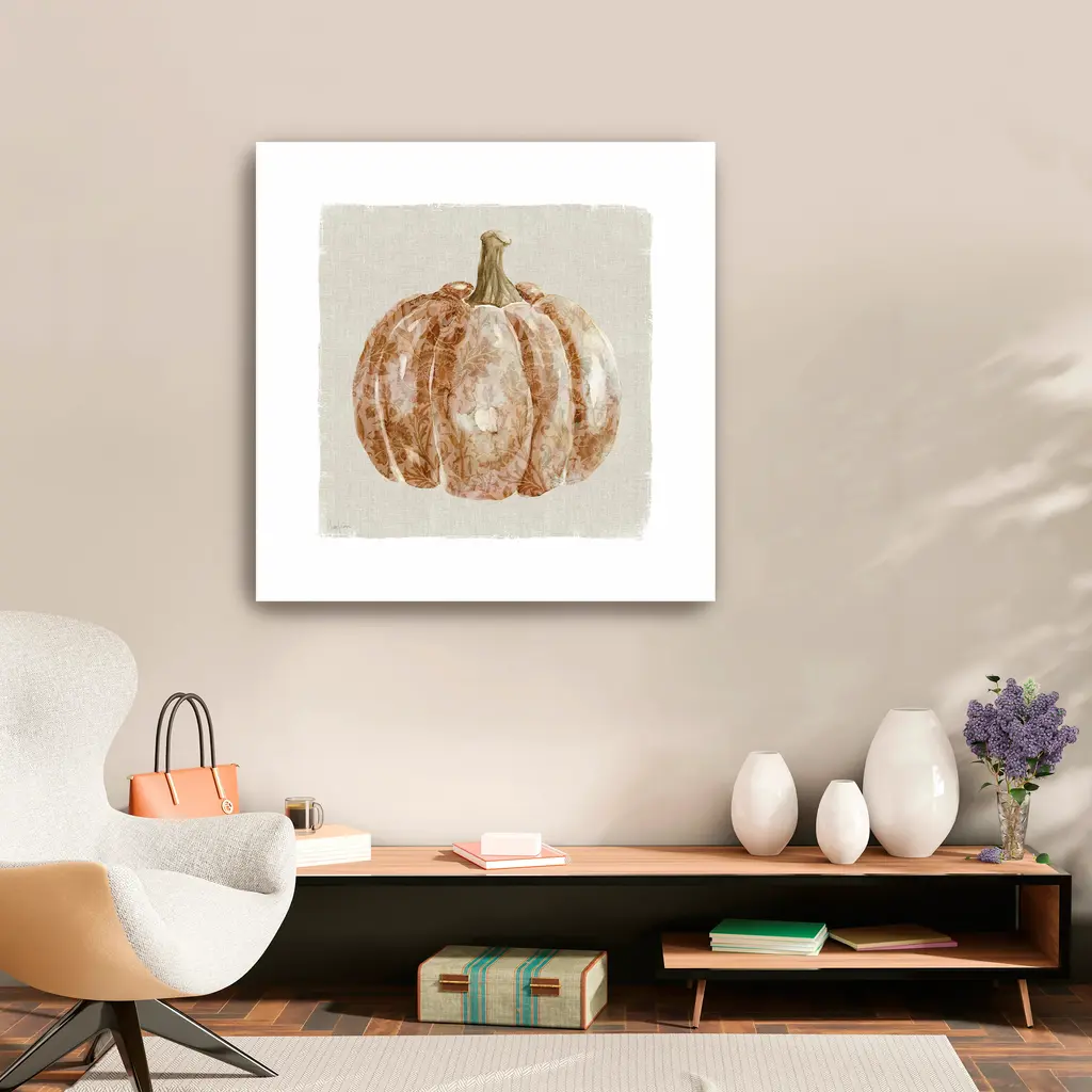 Transform any space into a fall retreat with a pumpkin canvas print that blends harvest motifs and seasonal warmth. A charming visual reminder of cozy gatherings and crisp autumn days. Our Gallery Wrap Canvas Prints are proudly assembled with high quality materials in California, USA. Each piece is printed on a thick, archival grade canvas using Giclee technology. It is then hand-stretched by our experienced artisans over solid wood bars, which will not warp over time. The final product is a piece personally crafted for you to confidently display on your wall. Care and Assembly: Ensure that the location of your piece has little to no exposure to heat, sunlight, and moisture. Wipe clean, only if needed. Each piece includes a sawtooth hanger to hang on your wall horizontally.