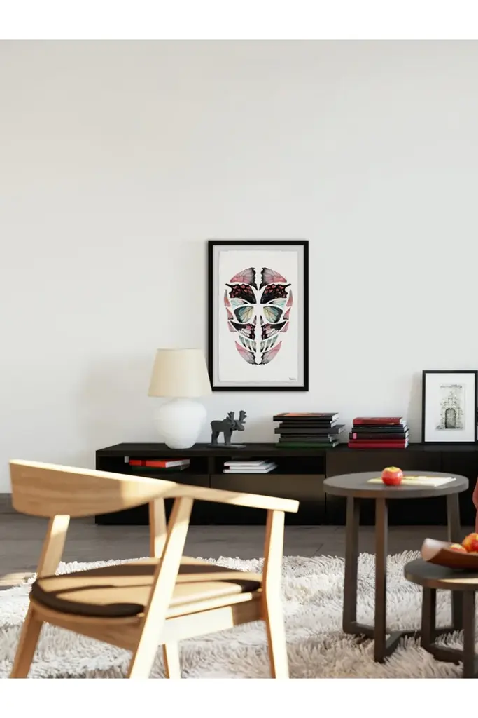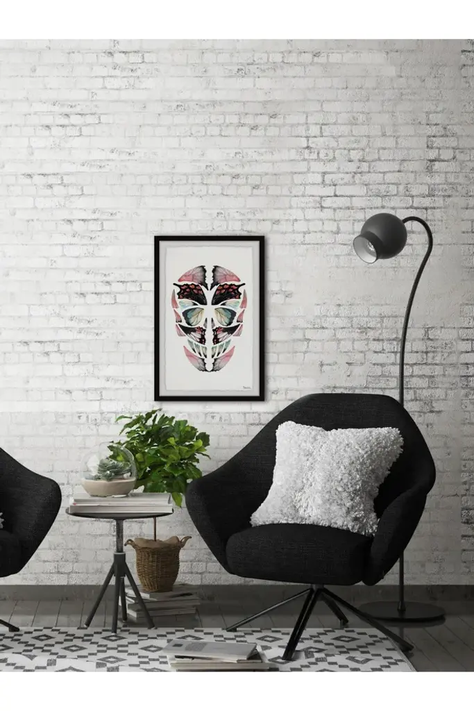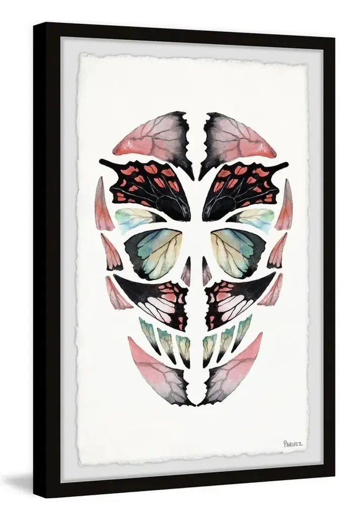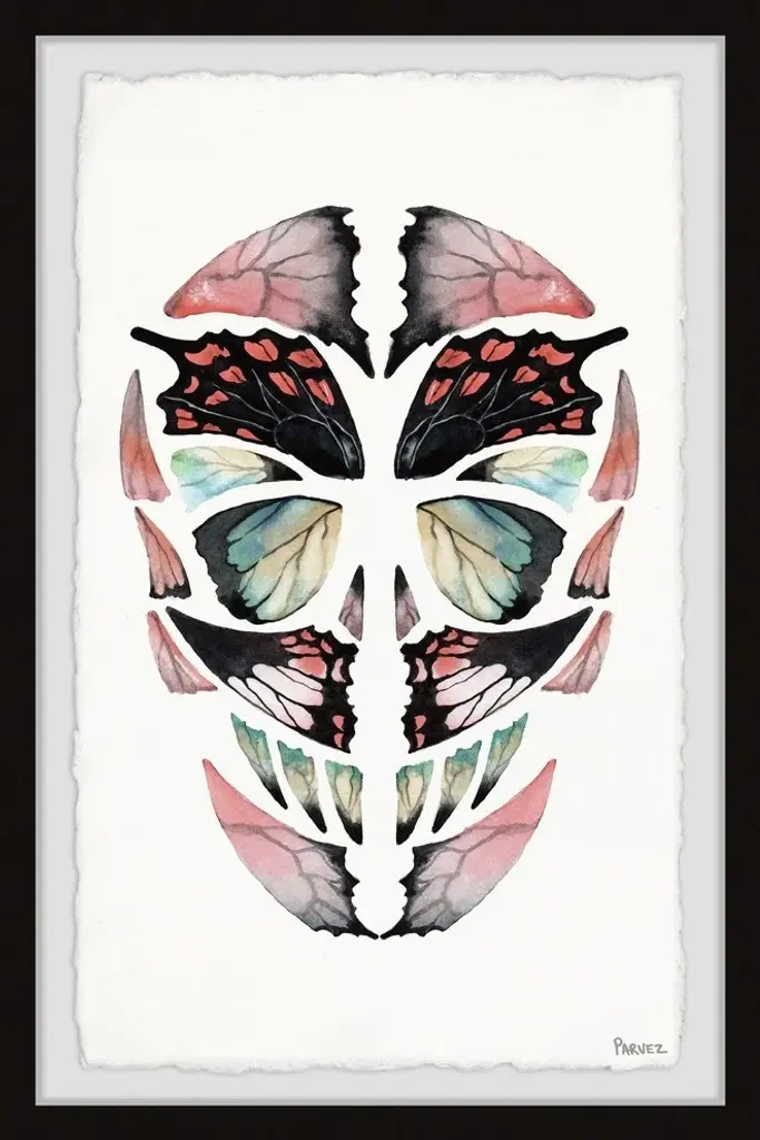 "Red Kaleidoscope Butterfly Skull" Framed Painting Print, 24"x36"