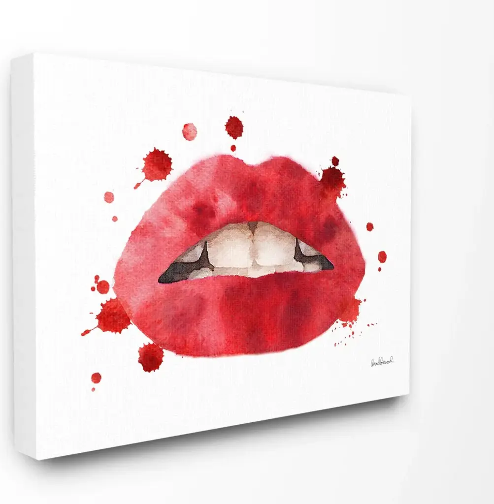 Red Lips Watercolor Splash Stretched Canvas Wall Art, 16"x20"