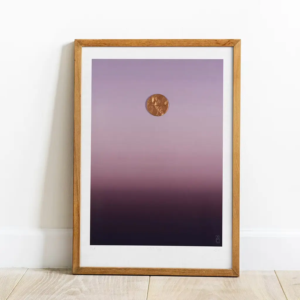 Inspired by the line "It is the very error of the moon; She comes more nearer earth than she was wont, And makes men mad" from Act V of Othello by William Shakespeare, this fine giclée print on 100% cotton belongs to a series of artworks dedicated to the moon, which is here super-printed with gold plate. Please inquire with the Concierge about the frame (not included) and version measuring 50x70cm.