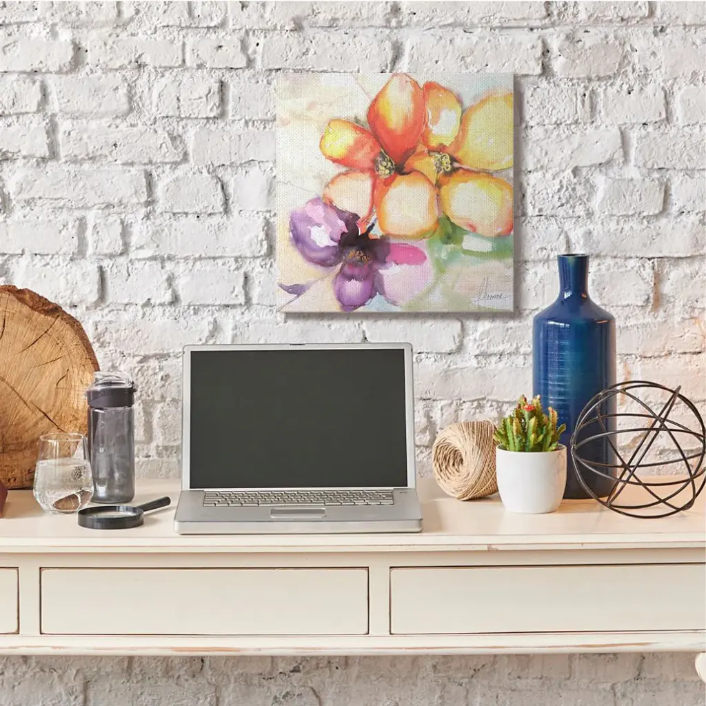Red Orange Flowers Warm Gold Accent Painting,1pc, Each 24 X 24