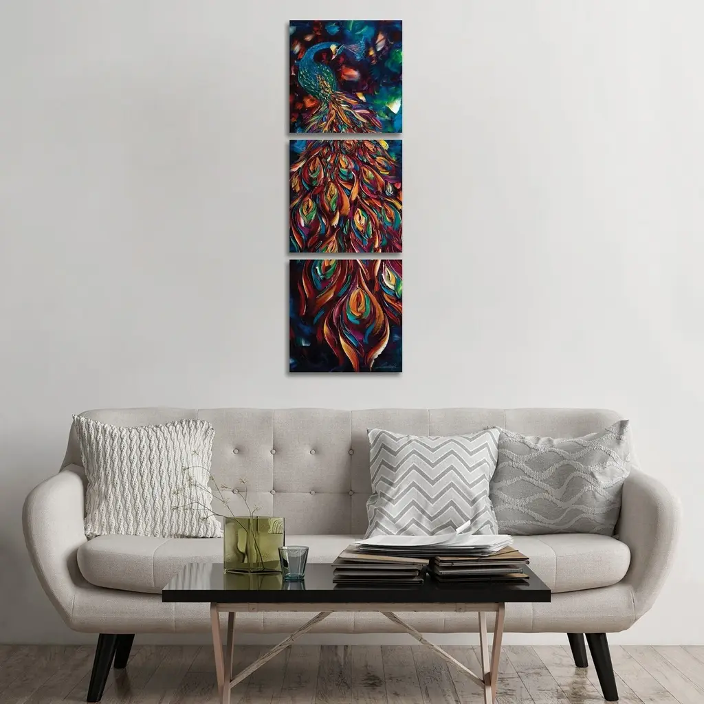 Red Peacock, Metal Print Wall Art, 3 Panel Split, Triptych Wall Art, 36x18