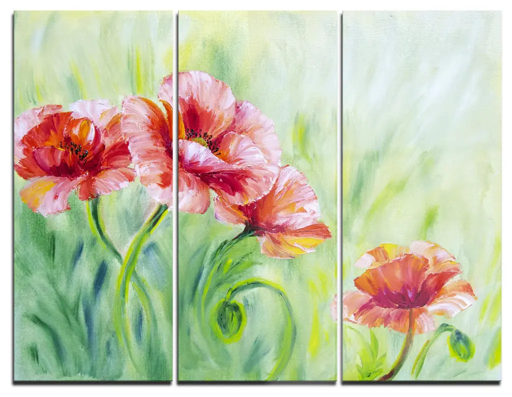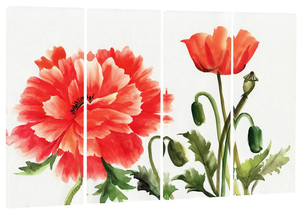 "Red Poppies" Canvas Print, 4 Panels, 48"x28"
