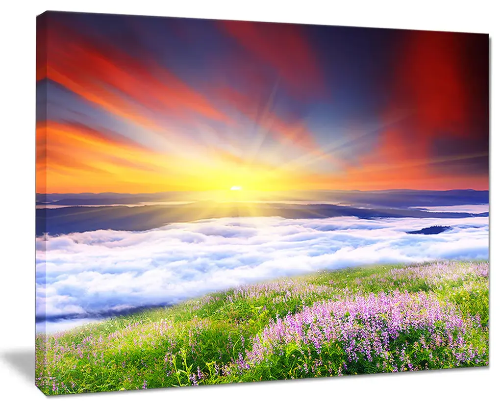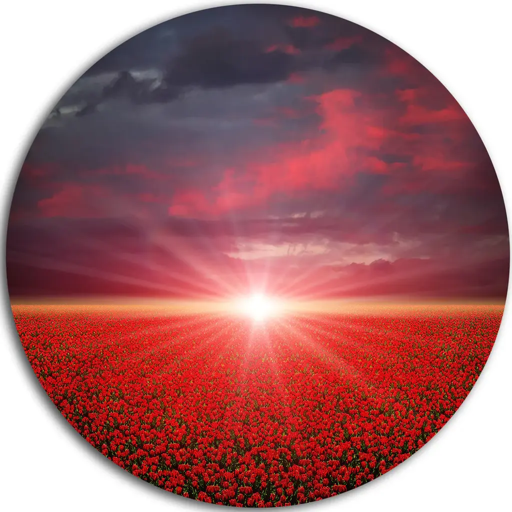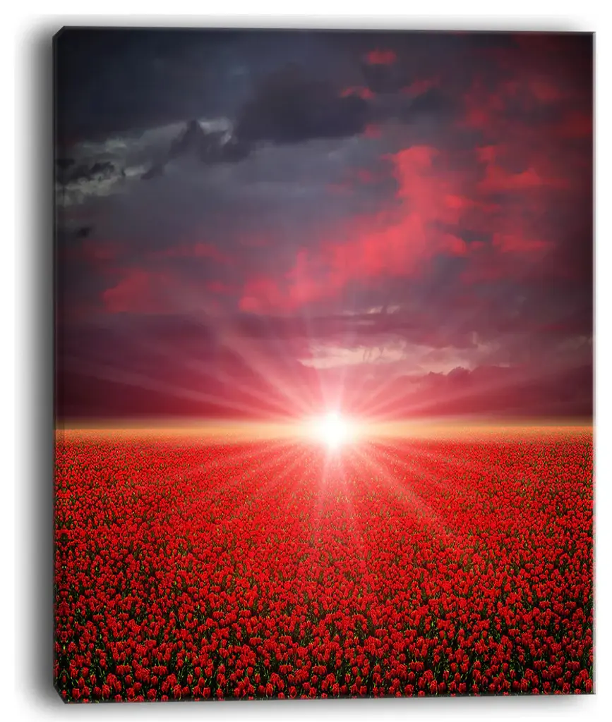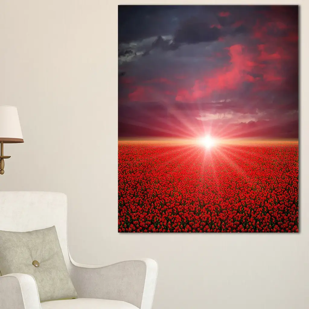 The Red Poppies Field at Sunset canvas art print is sure to make an impression on anyone who sees it. This artwork is gallery wrapped around a 1-inch solid wood frame and arrives carefully packaged and entirely ready to hang on the wall. Design Art only uses the highest resolution and pigments to ensure a crisp colorful print that is never faded or pixelated. This artwork is sure to be a conversation starter in any home or office.