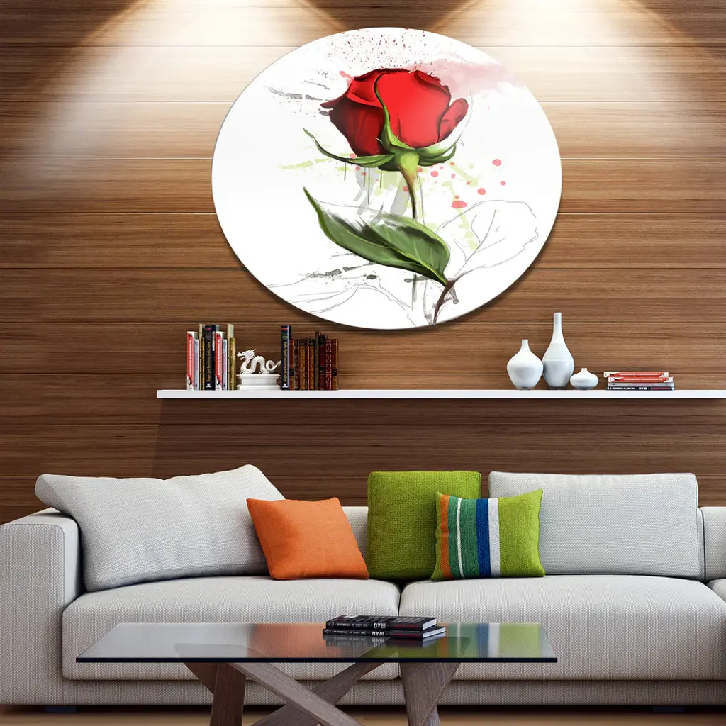 Bring Contemporary Abstraction to your home with this large Circle Metal wall art. This Red Rose Hand-drawn Illustration Metal Artwork makes it the focal point of any room or office. - White Gloss Coating ensures colors are extra vibrant with light reflection.- Aluminum grade Sheet Metal with 1 inch mounting frame on the back giving the illusion that the artwork is floating on the wall..- Mounting Brackets are included along with instructions.- High Quality Digital images are created directly into a glossy aluminum panel producing a stunning and captivating print into the glossy finish of the metal.- Water, Fire and Scratch resistant HD Aluminum panels.- Looks better than any photo paper and guaranteed to last at least 20 years- Easy to clean with a microfiber cloth. Colors are far superior to regular Canvas Art. - Easy to Hang