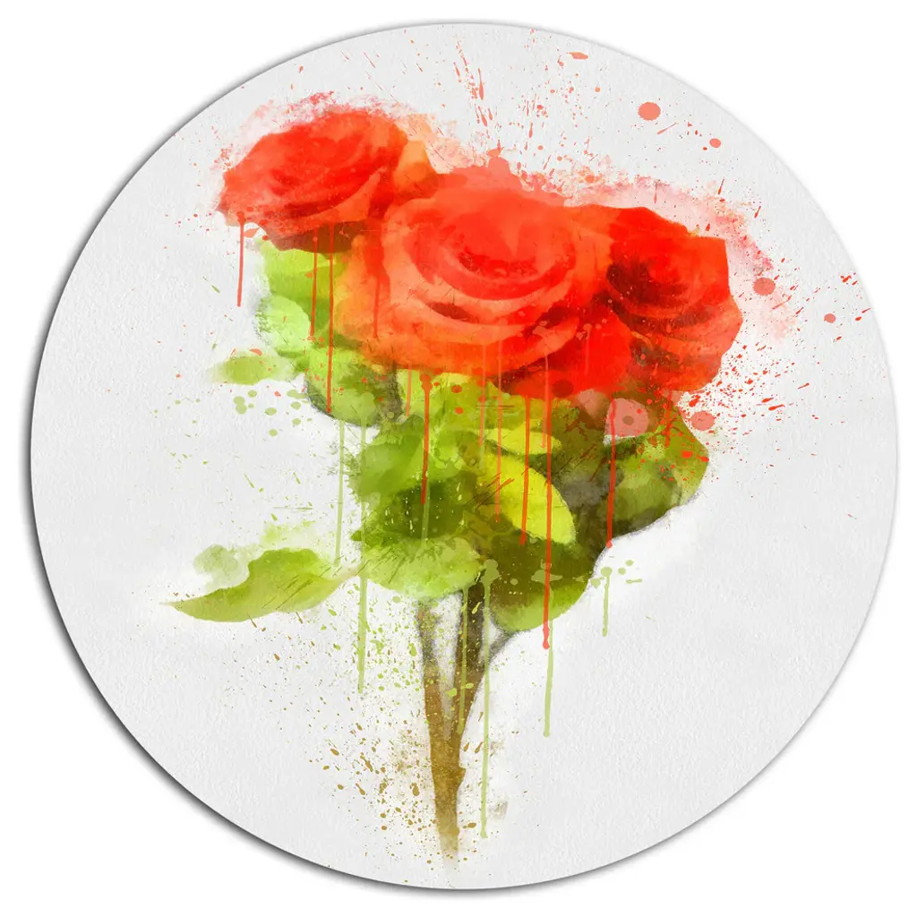 Red Rose Hand-Drawn Painting, Floral Large Disc Metal Wall Art, 11"