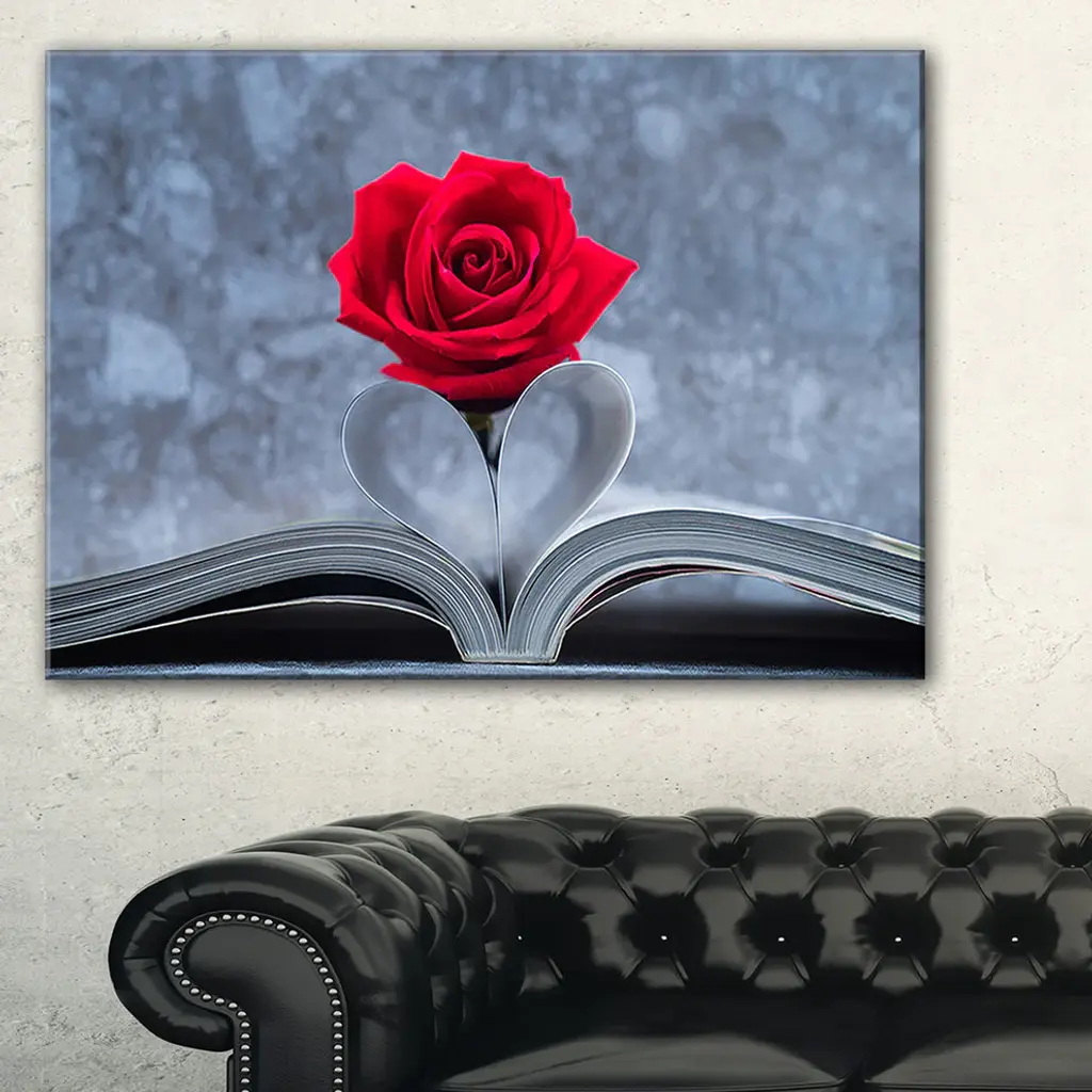 "Red Rose Inside The Book" Floral Art Canvas Print, 40"x30"