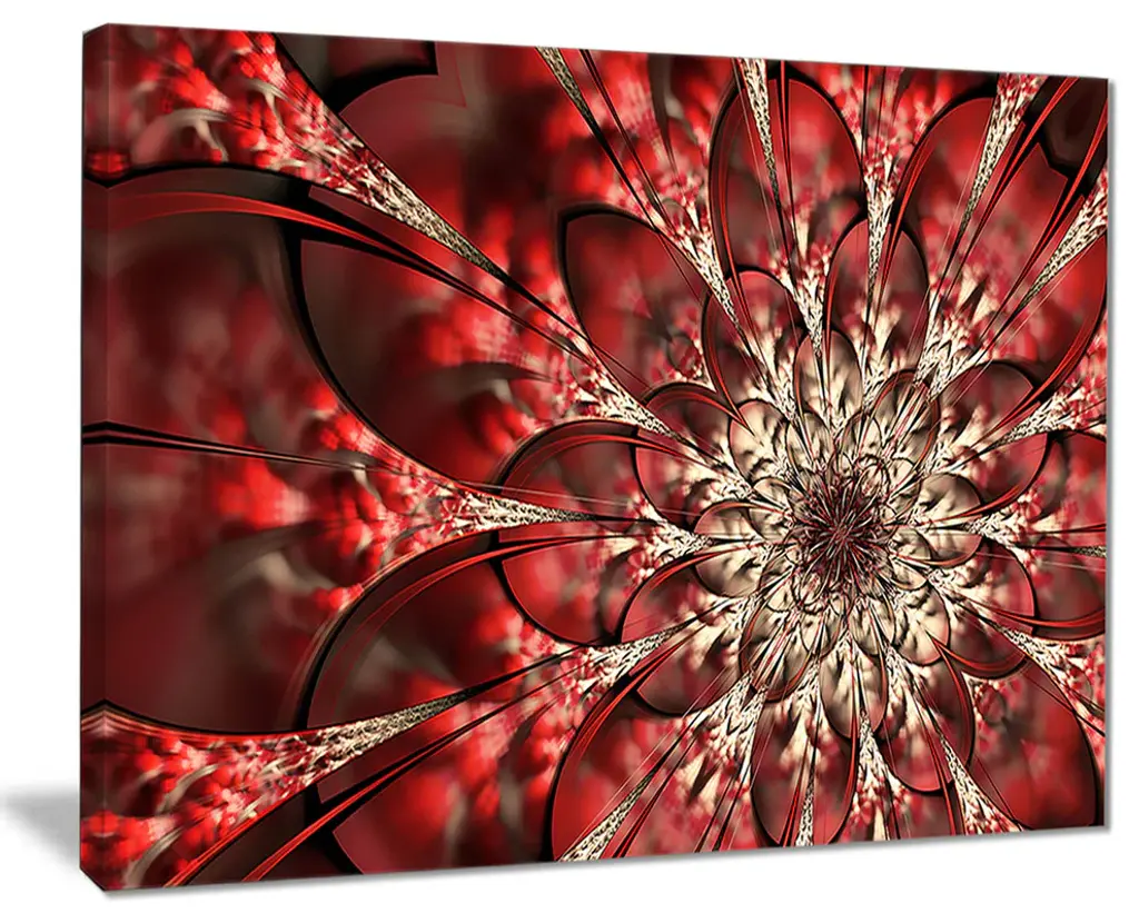The Red Symmetrical Flowers Pattern canvas art print is sure to make an impression on anyone who sees it. This artwork is gallery wrapped around a 1-inch solid wood frame and arrives carefully packaged and entirely ready to hang on the wall. Design Art only uses the highest resolution and pigments to ensure a crisp colorful print that is never faded or pixelated. This artwork is sure to be a conversation starter in any home or office.