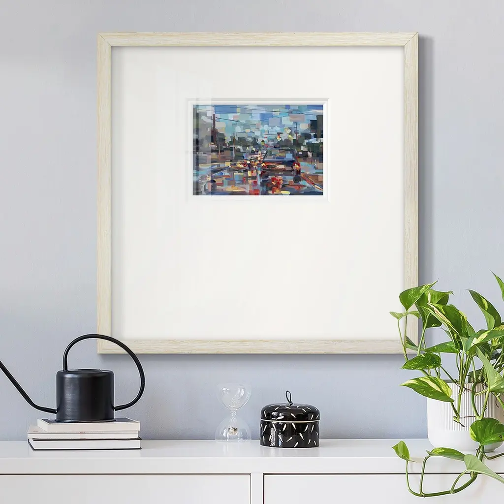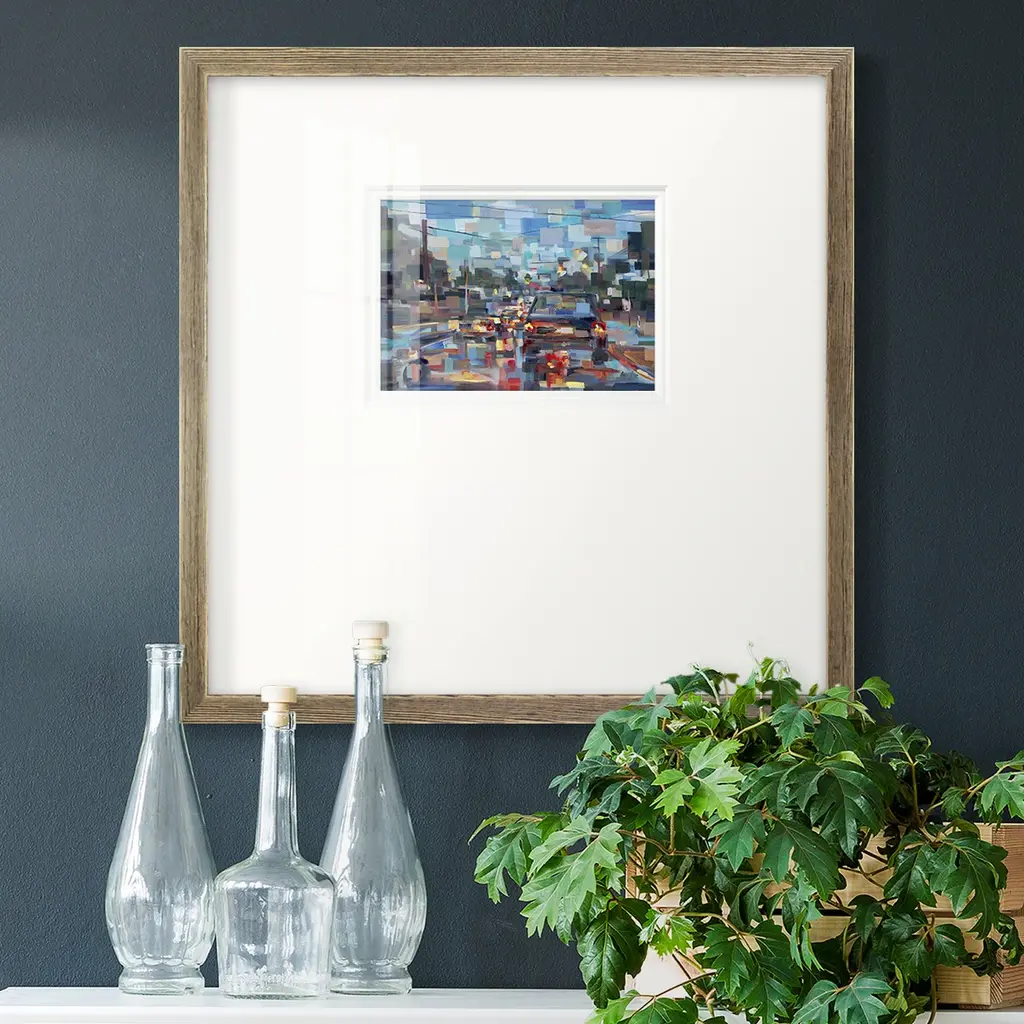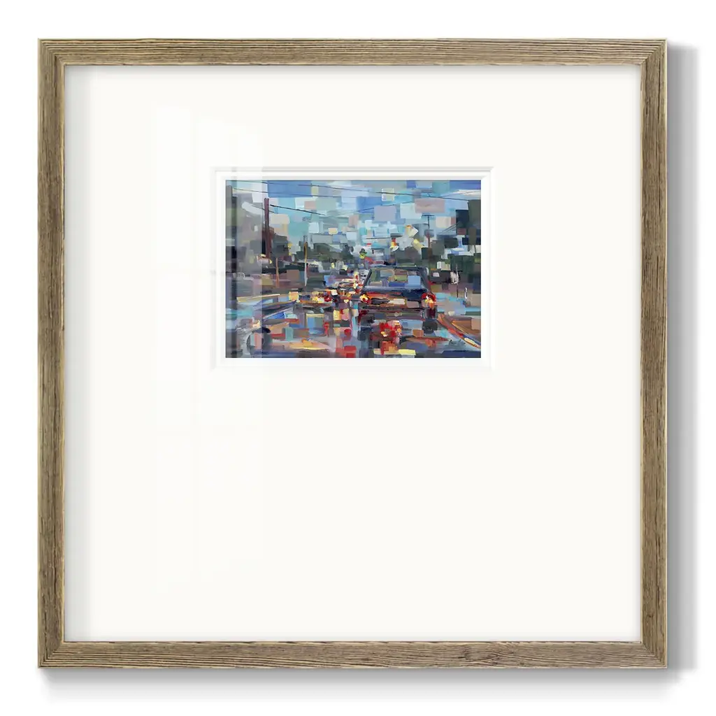 Red TrafficPremium Framed Print A framed cold pressed paper print featuring superior double matting and quality frame. 2 SIZES AVAILABLE 16''X16''' - Overall Size 20''X20''' - Overall Size Each piece is made to order. Each piece comes with hanging hardware. Made in the USA Ready to Hang Giclee Paper Print Plexiglass Beveled Matt Board Double Matte Board