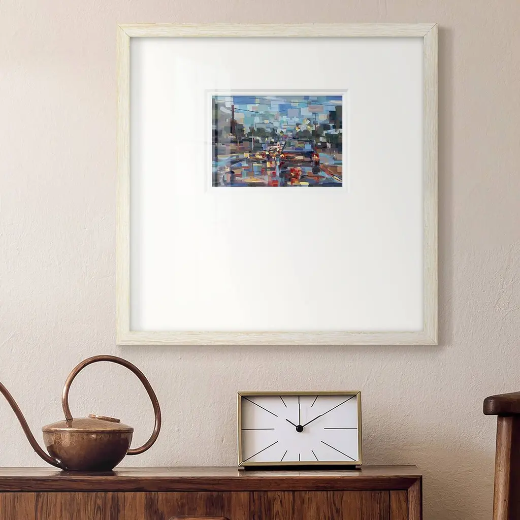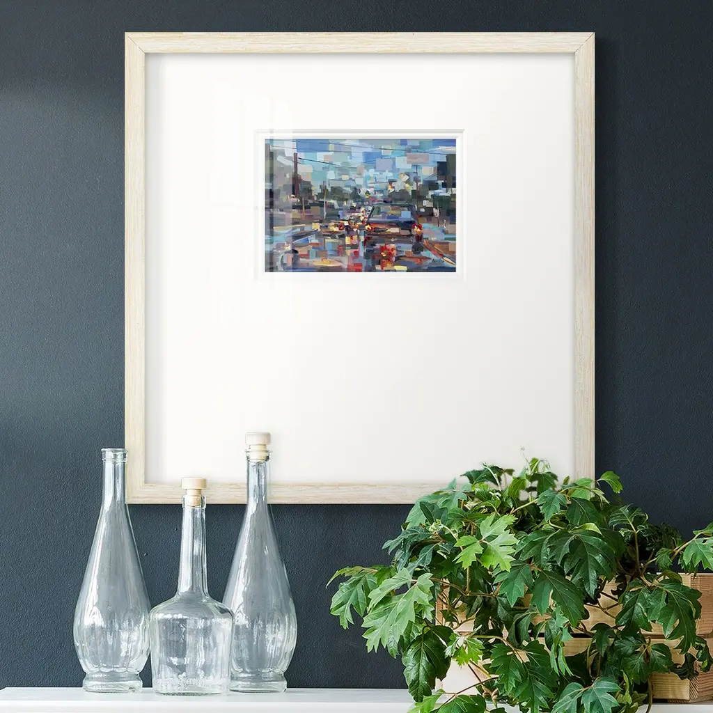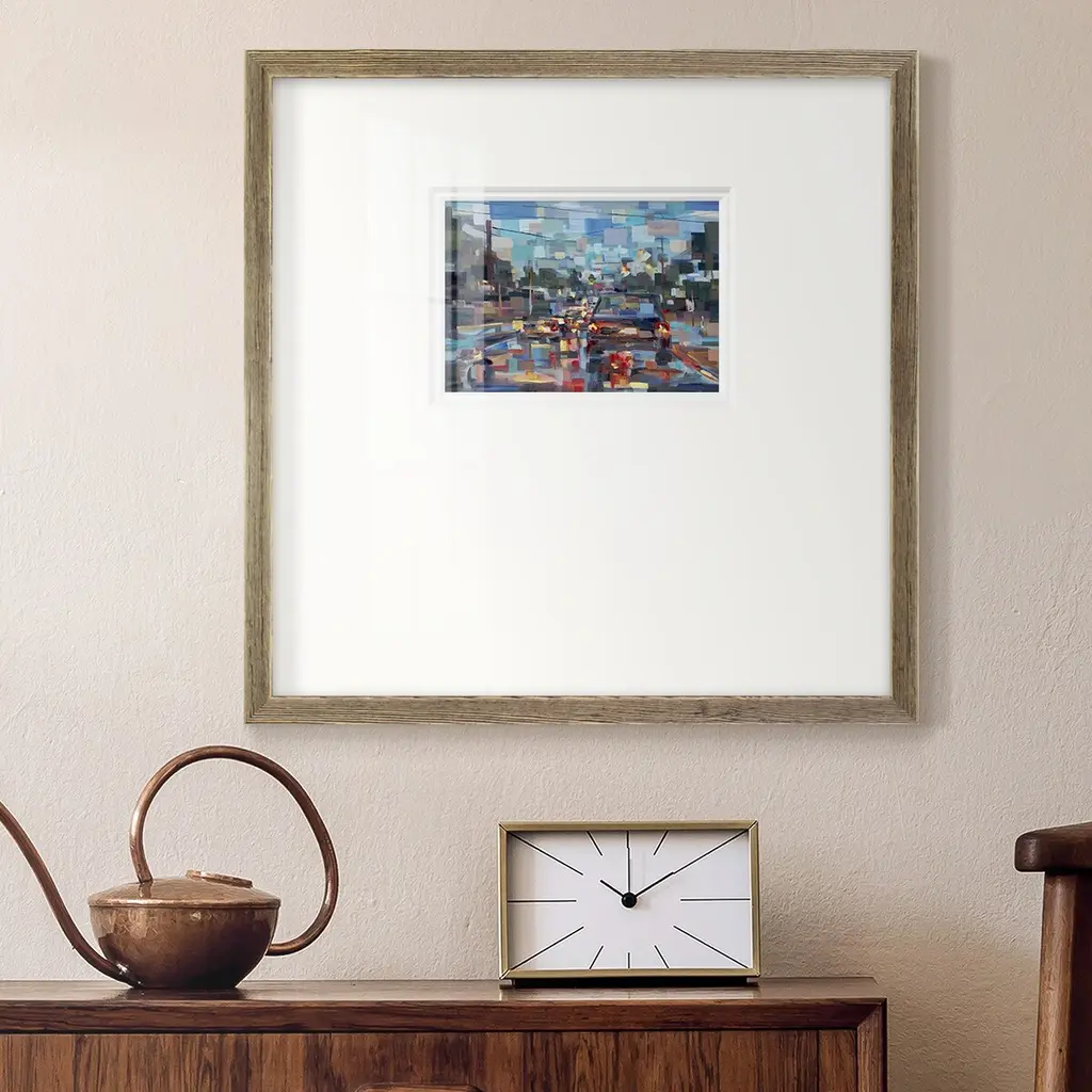Red TrafficPremium Framed Print A framed cold pressed paper print featuring superior double matting and quality frame. 2 SIZES AVAILABLE 16''X16''' - Overall Size 20''X20''' - Overall Size Each piece is made to order. Each piece comes with hanging hardware. Made in the USA Ready to Hang Giclee Paper Print Plexiglass Beveled Matt Board Double Matte Board