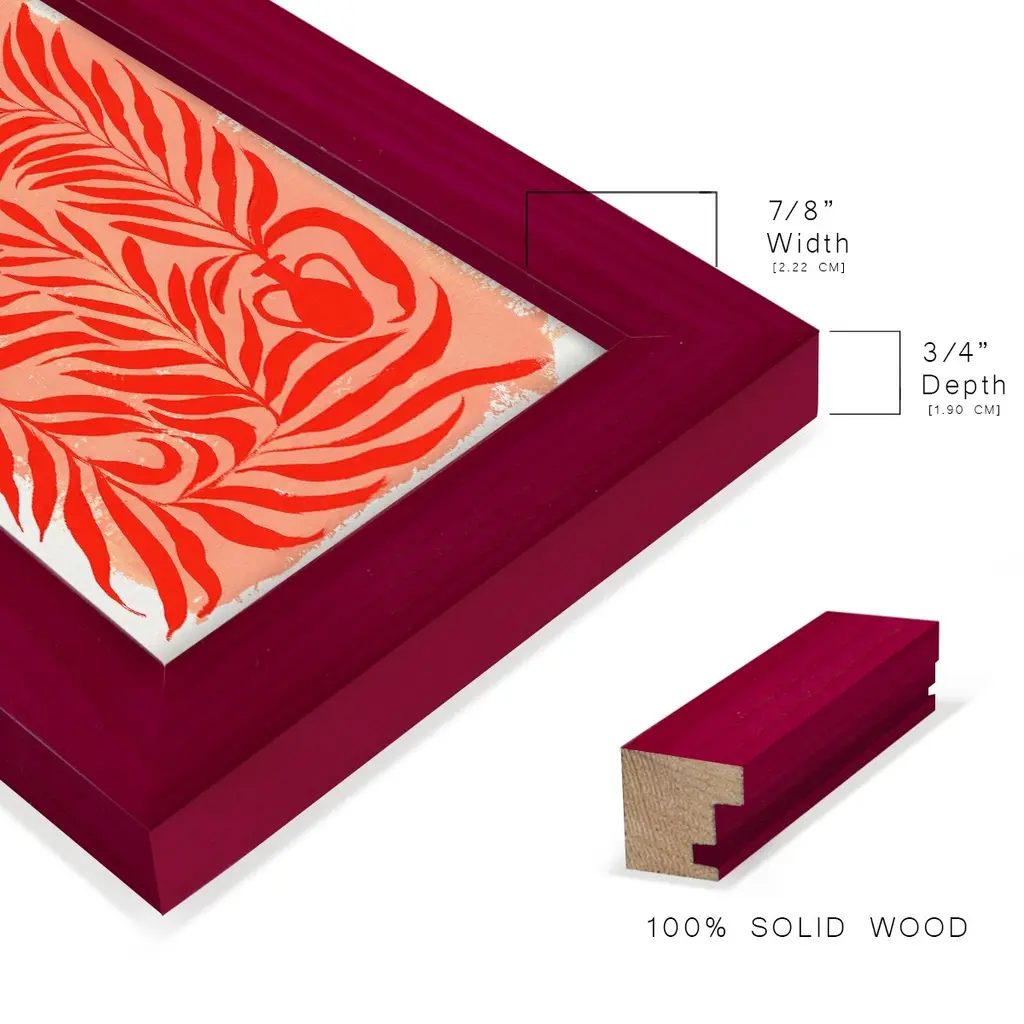Red Vines II -EZ SWITCH Framed Print w/glass-Cherry Red A delightful, framed print. Featuring a solid wood frame with real wood glass. This premium print is giclee quality. In addition, every frame features a removable back and table top stand. This allows you to change your art in the future or to just stand the art on a table for a new look. We are sure you'll enjoy our new series of EZ SWITCH Framed Art. Solid Wood Frame Real Glass Removable / Replaceable Art Built in Tabletop Stand Sizes range from 4x6 up to 12x15 - buy just one or pair them up as sets as you see fit.
