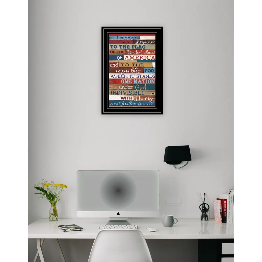 The pledge of allegiance 2 black framed print wall art is the perfect decorative accessory for your home. This print is a visual artistic expression that allows you to decorate your space in style. Reproduced for you on paper, this hanging decorative accent will be a trendy and fashionable way to dress your walls. Adding this hanging wall art to your space to make your room feel more finished and attractive. Utilize this opportunity to create a focal point in the room with this fabulous wall decor option. 15" H x 11" W x 1" D