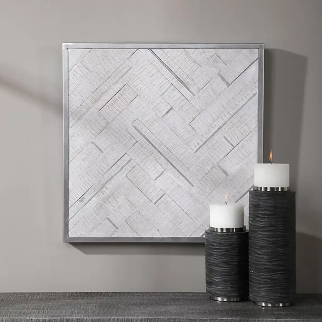 The Redondo Wall Art from Uttermost integrates classic herringbone patterning with unexpected metal bar inserts for a fresh take on wall décor. Each pine segment is precisely cut and arranged to create dimensional depth that catches light and shadow throughout the day. The slight irregularities in the wood grain provide organic contrast to the structured arrangement. This adaptable piece works in multiple orientations, allowing you to switch between horizontal and vertical displays as your space evolves. The frame provides a clean border that enhances the intricate inlay work without competing for attention.