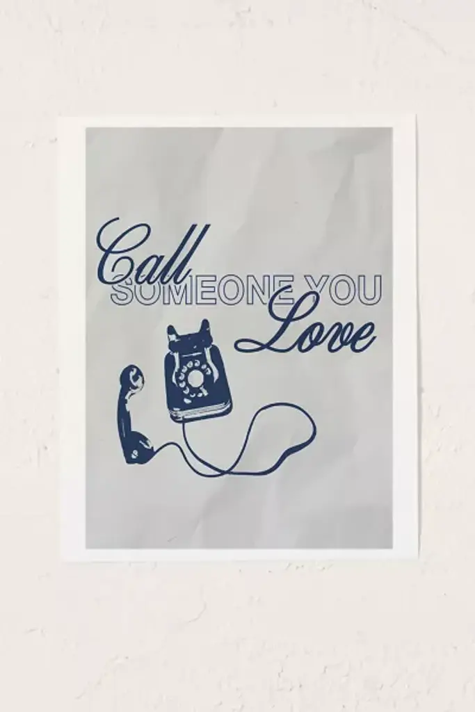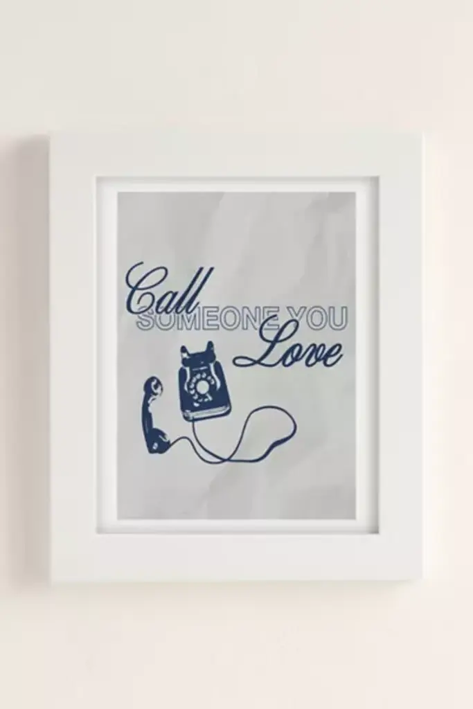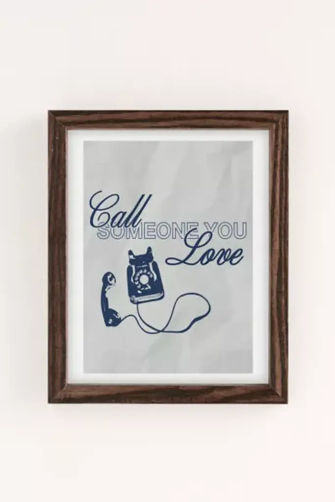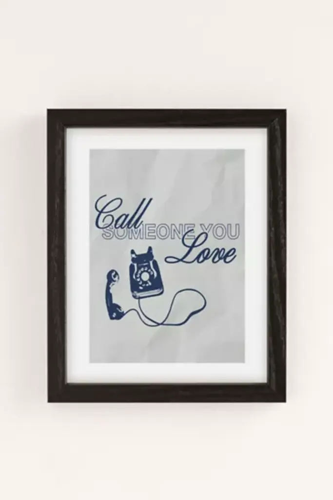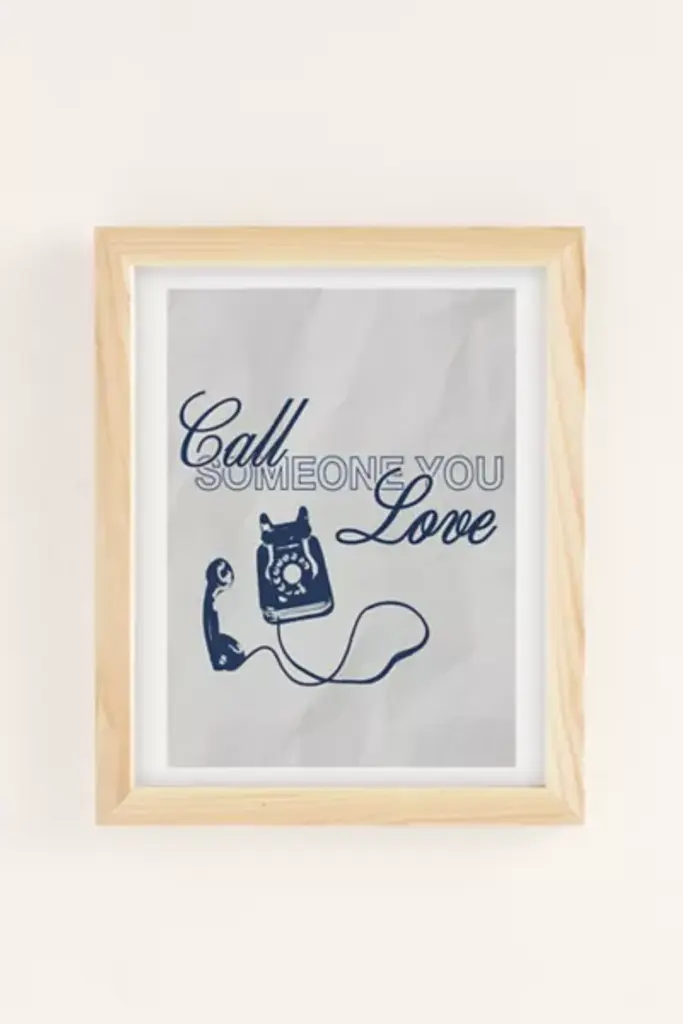 Art print by Refined Collective featuring a retro rotary phone paired with Call Someone You Love text. Printed on archival paper made from cotton pressed in Italian mills, this high-quality art print is available in sizes and frames just right for your space. First select your frame (or go frameless), then select your size. **About the Frames** \- The exact width of each frame may vary slightly \- All frames are manufactured in the US \- Matte frames are durable poly \- Wood frames are recycled wood \- All are fitted with protective plexiglass \- Finished with wood moldings, archival backer and protective bumpers **Size** \- Available in multiple sizes \- Use the Size Guides to find the size that fits your space **Content + Care** \- Wipe clean \- Made in the USA