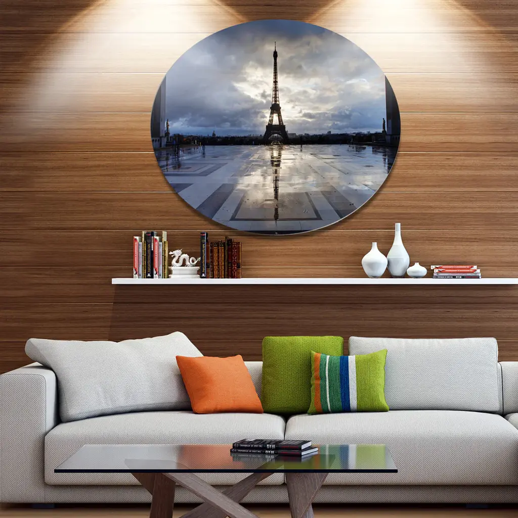 Reflection Of Eiffel Tower With Clouds, Cityscape Round Wall Art, 36"