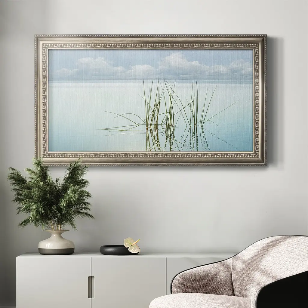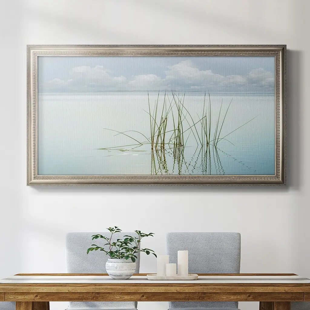 Reflections Premium Framed Canvas- Ready to Hang A Premium Framed Canvas created to last. Framed in distressed wood and available in an array of sizes and colors Featuring a beveled a solid wood stretcher bar, each piece comes ready to hand 3 SIZES AVAILABLE 21''X37'' - Overall Size 25''X45'' - Overall Size 29''x53'' - Overall Size Each piece is made to order. Each piece comes with hanging hardware. Made in the USA Ready to Hang Giclee Paper Print Acrylic Glass Beveled Matt Board