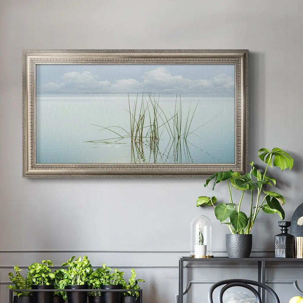 Reflections Premium Framed Canvas- Ready to Hang A Premium Framed Canvas created to last. Framed in distressed wood and available in an array of sizes and colors Featuring a beveled a solid wood stretcher bar, each piece comes ready to hand 3 SIZES AVAILABLE 21''X37'' - Overall Size 25''X45'' - Overall Size 29''x53'' - Overall Size Each piece is made to order. Each piece comes with hanging hardware. Made in the USA Ready to Hang Giclee Paper Print Acrylic Glass Beveled Matt Board