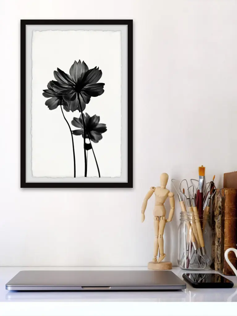 Make your space more bolder with this photographic print that features three pitch black flowers in front of a white background. Proudly printed in the USA, this piece is printed on high quality archive paper and professionally hand-framed. With wall-mounting hooks included, this artful accent is ready to hang up as soon as it reaches your front door.- Top quality Giclee print on high resolution Archive Paper- Hand cut deckled edges- High quality durable non-warping frame- Finished under shatter resistant plexiglass- Arrives ready to hang- Includes a certificate of authenticity- Printed in the USA