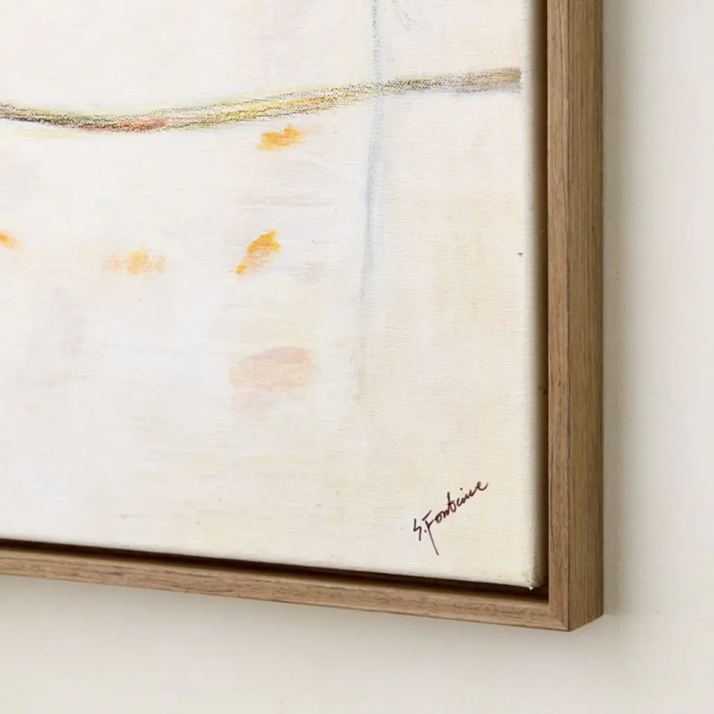 Layering paint, pastel and pencil, artist Stephane Fontaine's "Reflexion" expresses a sense of awe for nature. Working with a light palette contrasted with hits of rusty reds and browns, the work is an exploration of nature's complexities and simplicity, inviting the viewer to contemplate the interconnectedness of all living things. "This work inspires me to reflect on the cycles of life and the harmony found in the natural world," Fontaine states. CB2 exclusive.Stephane Fontaine is an Ontario-based artist who favors exploring different materials, mediums and subjects, never settling on a single style. "The only thing that matters to me is being completely and utterly in the present moment," he says. "This is the essence of creativity."