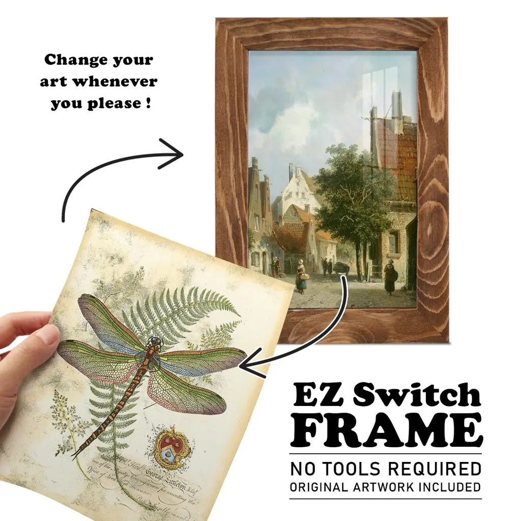 Regal Dragonfly I (PP) -EZ SWITCH Framed Print w/glass-Cherry Red A delightful, framed print. Featuring a solid wood frame with real wood glass. This premium print is giclee quality. In addition, every frame features a removable back and table top stand. This allows you to change your art in the future or to just stand the art on a table for a new look. We are sure you'll enjoy our new series of EZ SWITCH Framed Art. Solid Wood Frame Real Glass Removable / Replaceable Art Built in Tabletop Stand Sizes range from 4x6 up to 12x15 - buy just one or pair them up as sets as you see fit.
