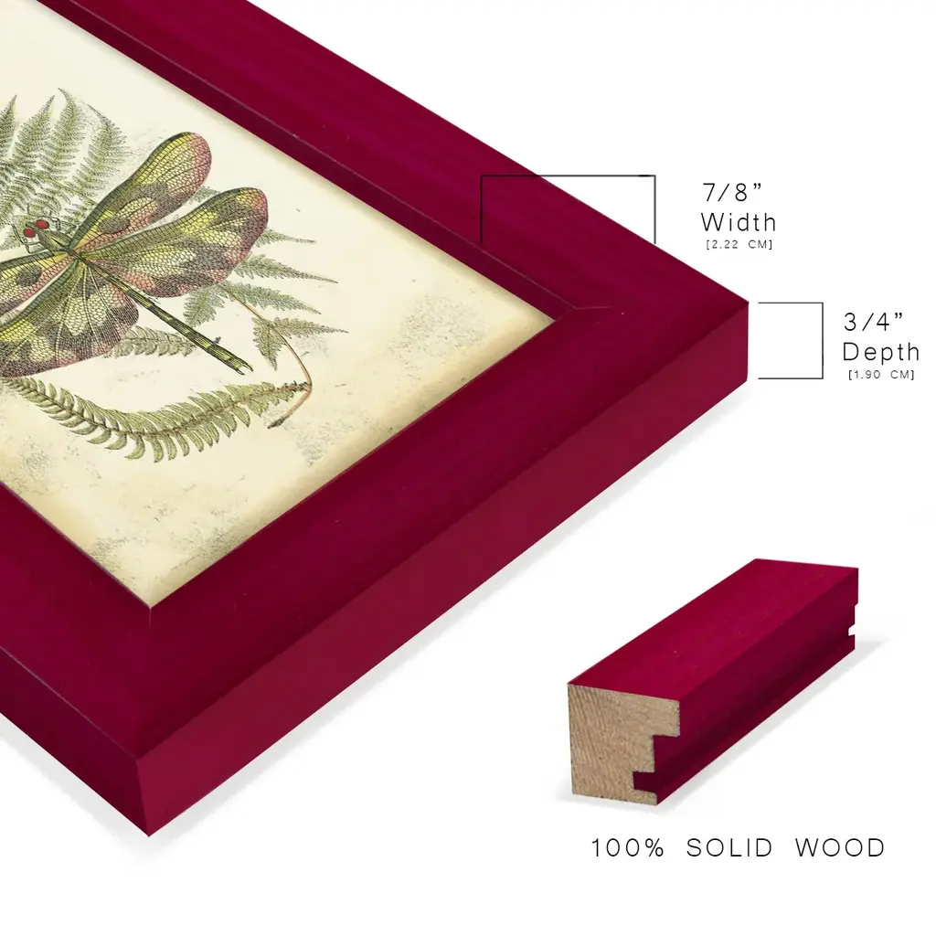 Regal Dragonfly IV (PP) -EZ SWITCH Framed Print w/glass-Cherry Red A delightful, framed print. Featuring a solid wood frame with real wood glass. This premium print is giclee quality. In addition, every frame features a removable back and table top stand. This allows you to change your art in the future or to just stand the art on a table for a new look. We are sure you'll enjoy our new series of EZ SWITCH Framed Art. Solid Wood Frame Real Glass Removable / Replaceable Art Built in Tabletop Stand Sizes range from 4x6 up to 12x15 - buy just one or pair them up as sets as you see fit.