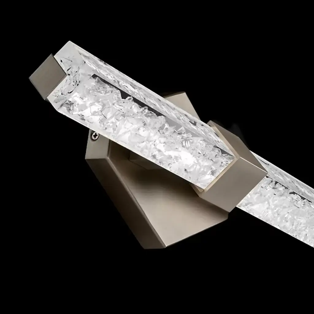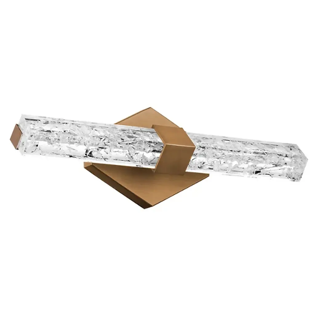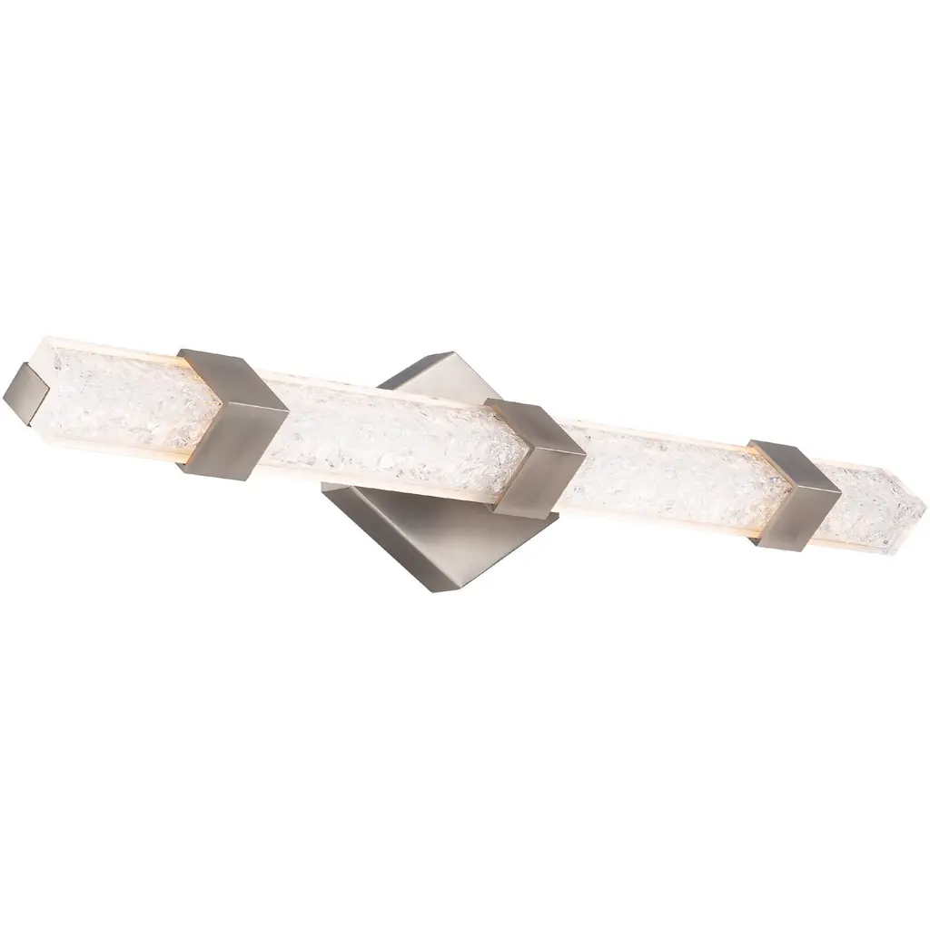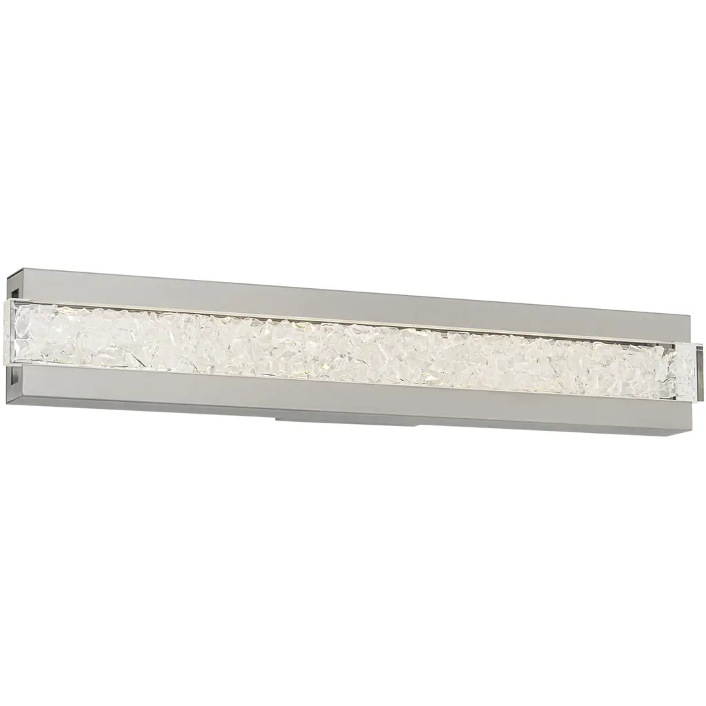 Grand, brilliant, impressive. Surround your bathroom with the sophisticated aura created by the Regal LED Vanity Light from Modern Forms. It's an attractive piece, whether you mount it on top or to the sides of your mirror. It silhouettes elegantly with a geometric backplate made from sleek aluminum. The aluminum backplate serves as a background for the mesmerizing crystal rod. The diffuser crystal is handmade by artisans from reclaimed material. It moves in a straight line, bursting with dazzling optics. The LED light shines through the texture-filled crystal to deliver a crisp, even glow.