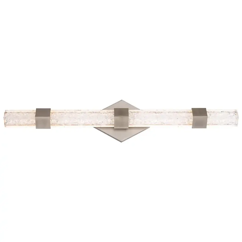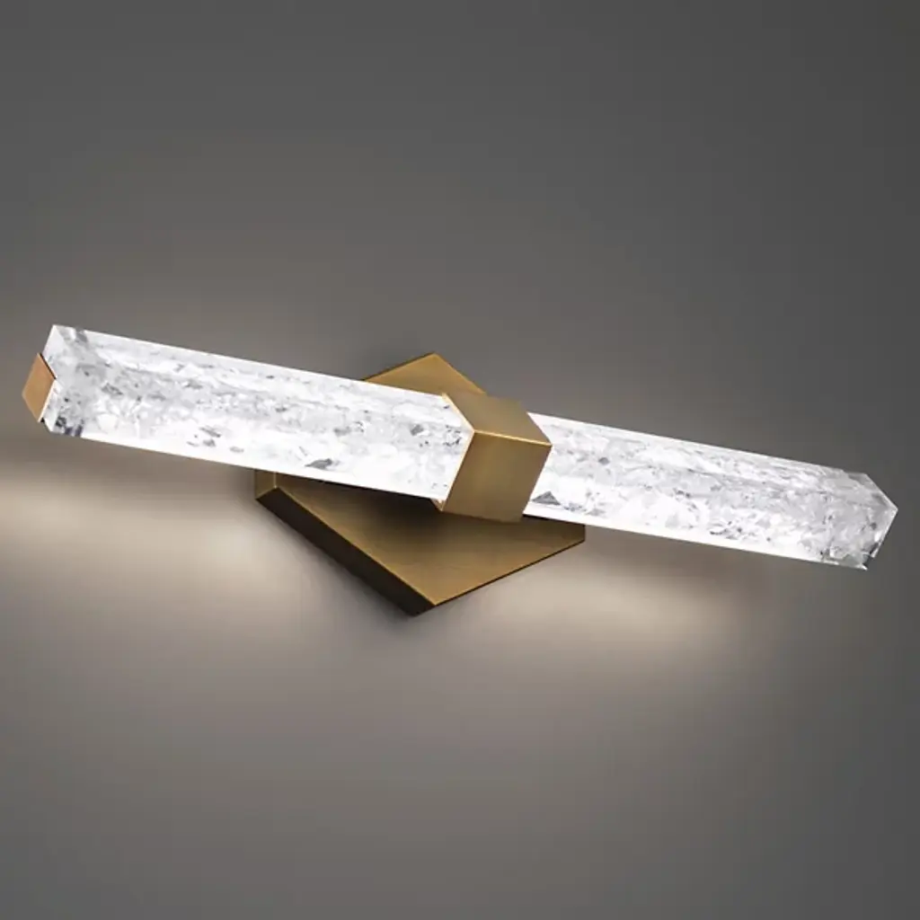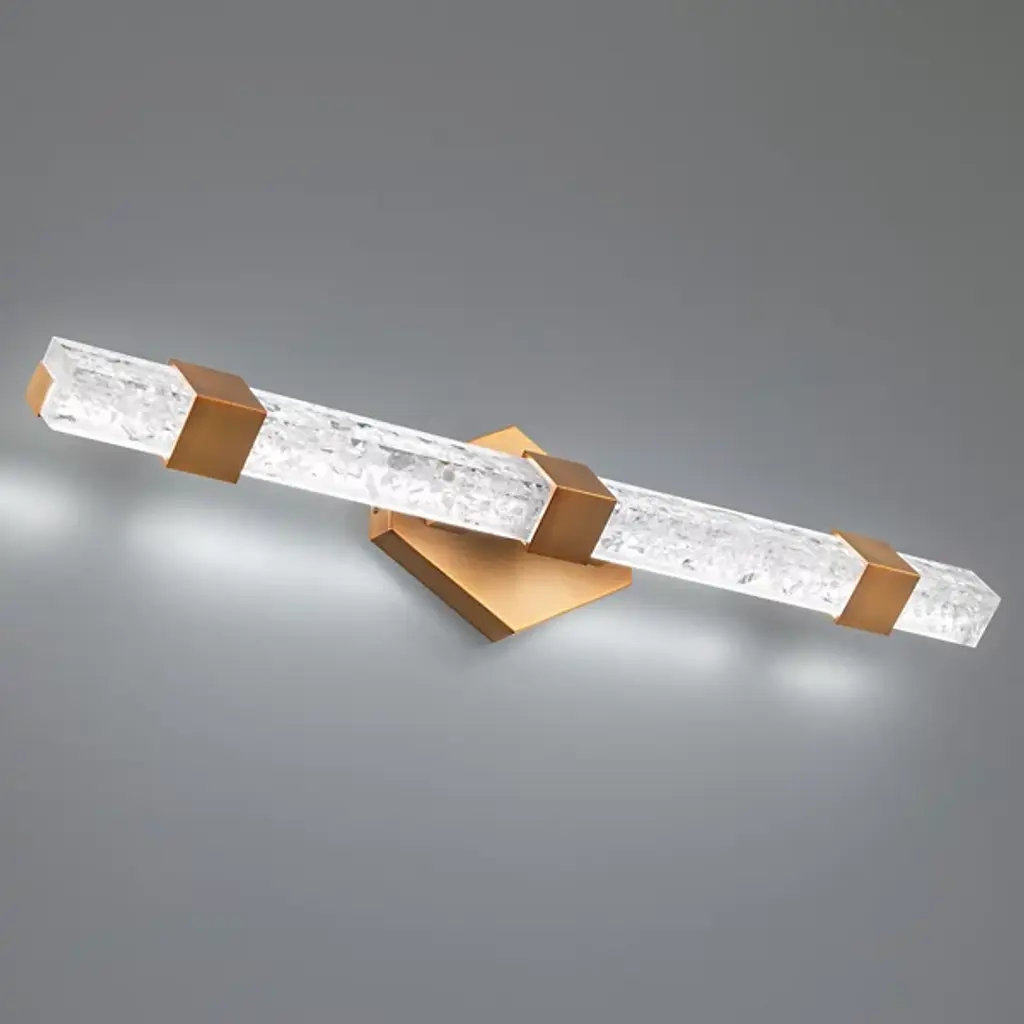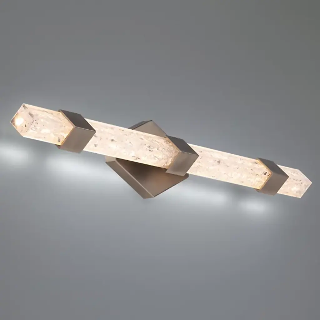 Grand, brilliant, impressive. Surround your bathroom with the sophisticated aura created by the Regal LED Vanity Light from Modern Forms. It's an attractive piece, whether you mount it on top or to the sides of your mirror. It silhouettes elegantly with a geometric backplate made from sleek aluminum. The aluminum backplate serves as a background for the mesmerizing crystal rod. The diffuser crystal is handmade by artisans from reclaimed material. It moves in a straight line, bursting with dazzling optics. The LED light shines through the texture-filled crystal to deliver a crisp, even glow.