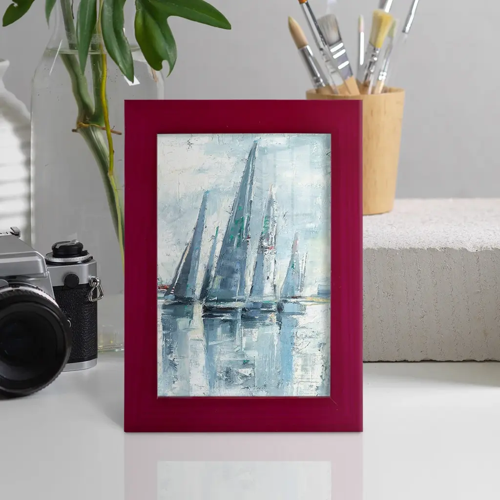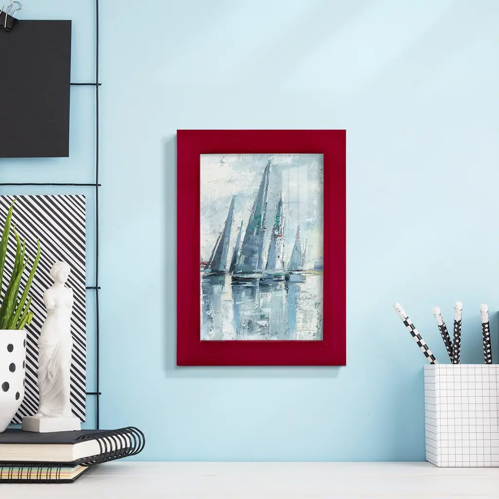 Regatta I -EZ SWITCH Framed Print w/glass-Cherry Red A delightful, framed print. Featuring a solid wood frame with real wood glass. This premium print is giclee quality. In addition, every frame features a removable back and table top stand. This allows you to change your art in the future or to just stand the art on a table for a new look. We are sure you'll enjoy our new series of EZ SWITCH Framed Art. Solid Wood Frame Real Glass Removable / Replaceable Art Built in Tabletop Stand Sizes range from 4x6 up to 12x15 - buy just one or pair them up as sets as you see fit.