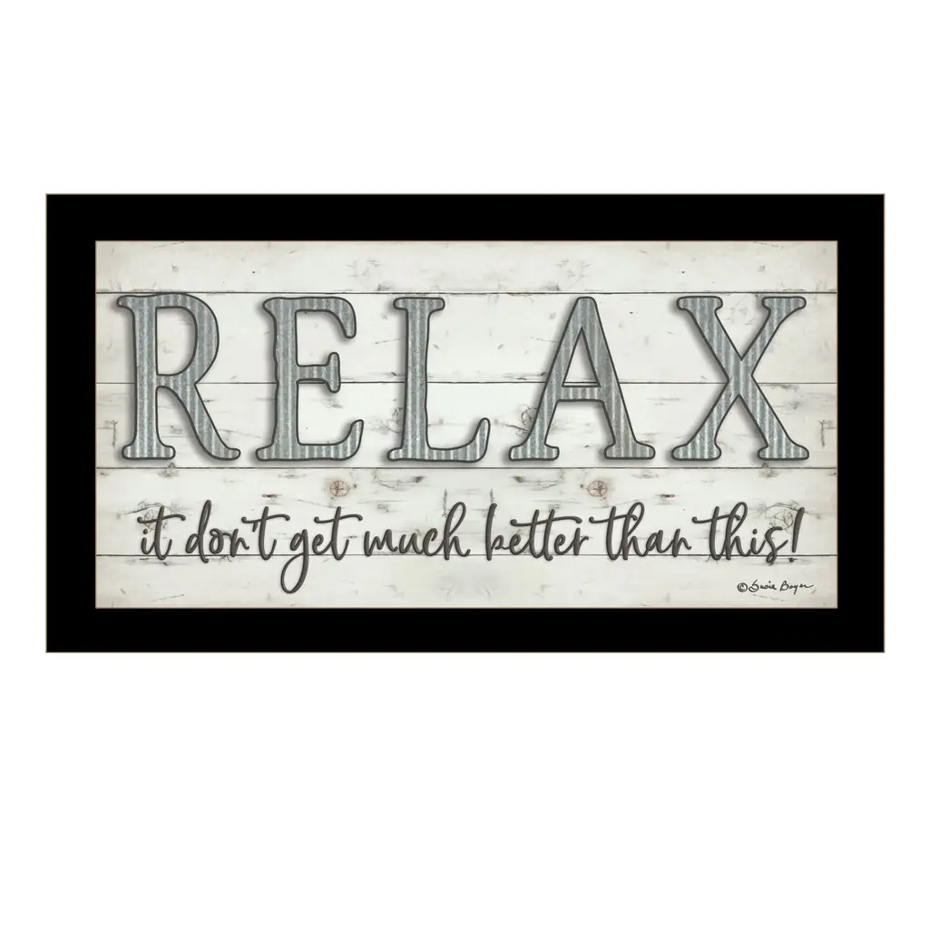 Unique and decorative, this relax 2 black framed print wall art will leave a lasting impression. This print is a visual artistic expression that allows you to decorate your space in style. Reproduced for you on paper, this hanging decorative accent will be a trendy and fashionable way to dress your walls. Hang on your wall to add some up to date fashion and decoration. Utilize this opportunity to create a focal point in the room with this fabulous wall decor option. 11" H x 20" W x 1" D
