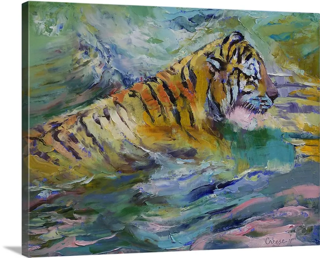 Relaxing Tiger, Animal Round Wall Art, 11"